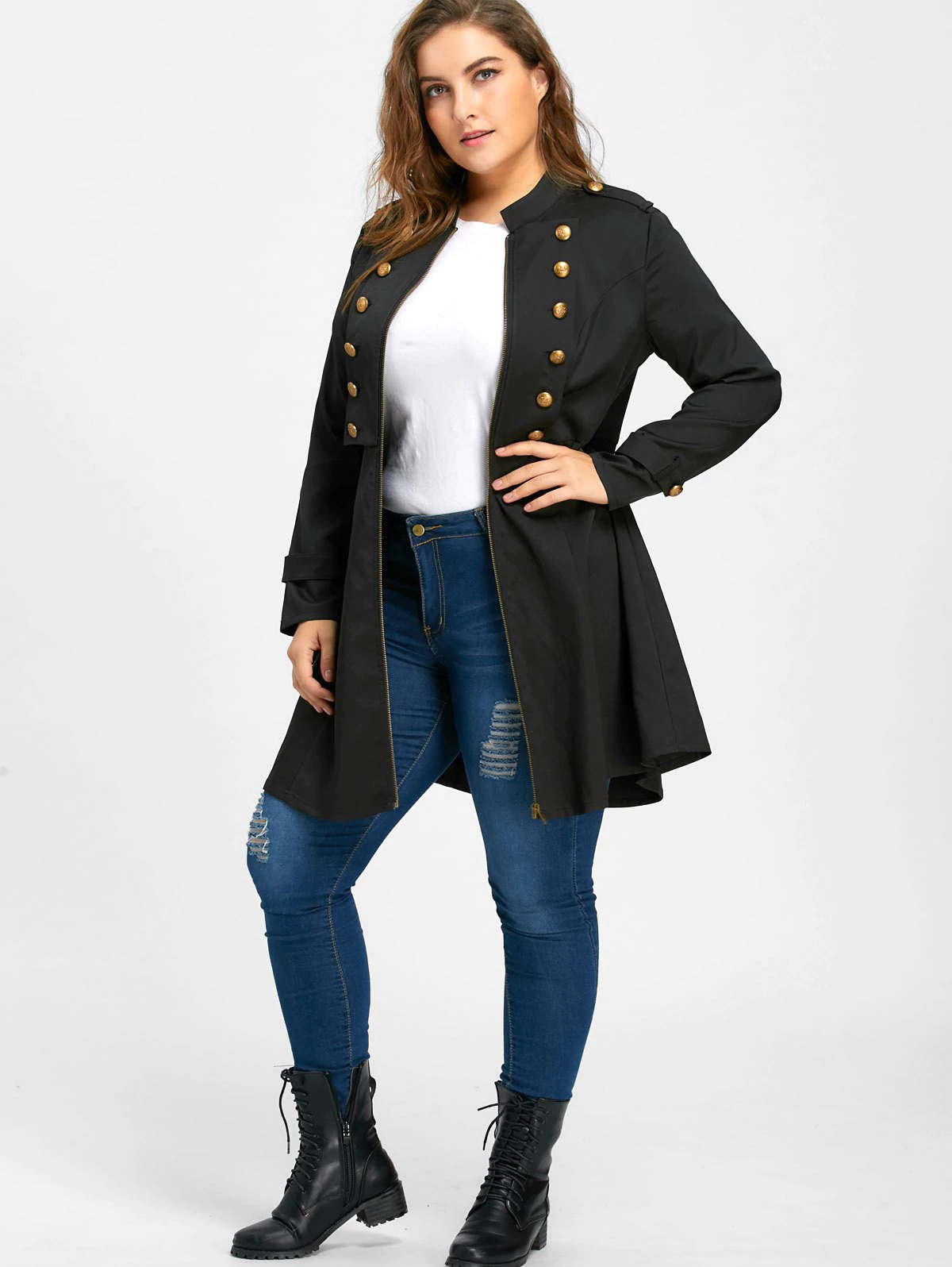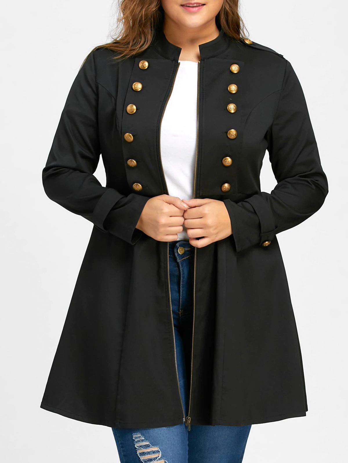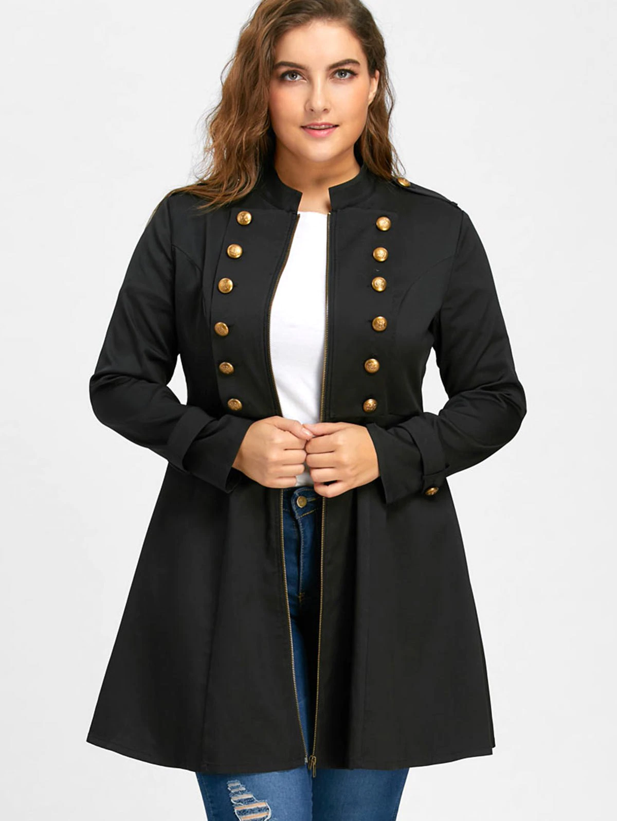 Plus Size Double Breasted Flare Coat