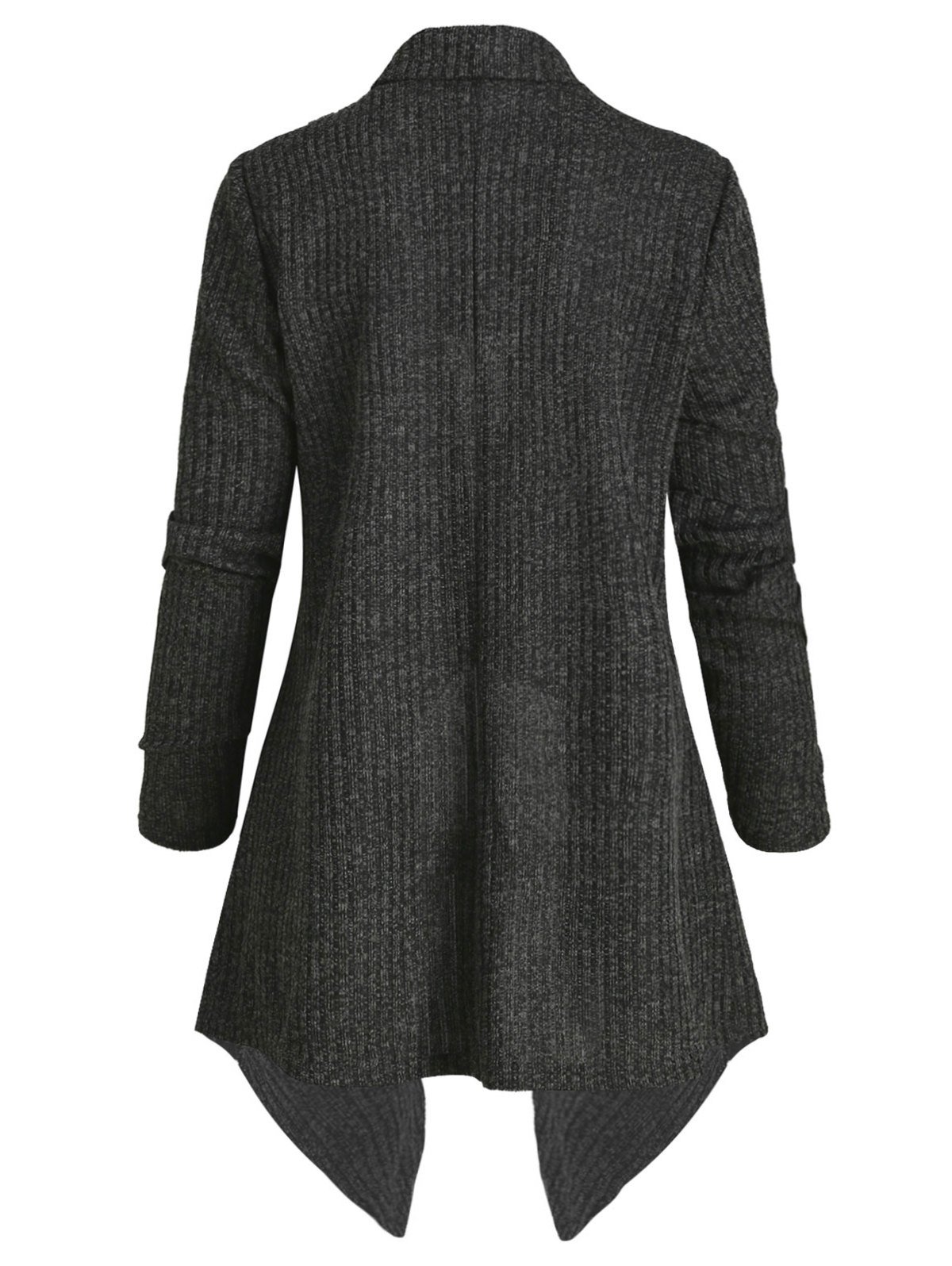 midweight marled knit cardigan features a draped open front and an asymmetric hem for perfect comfort and style.