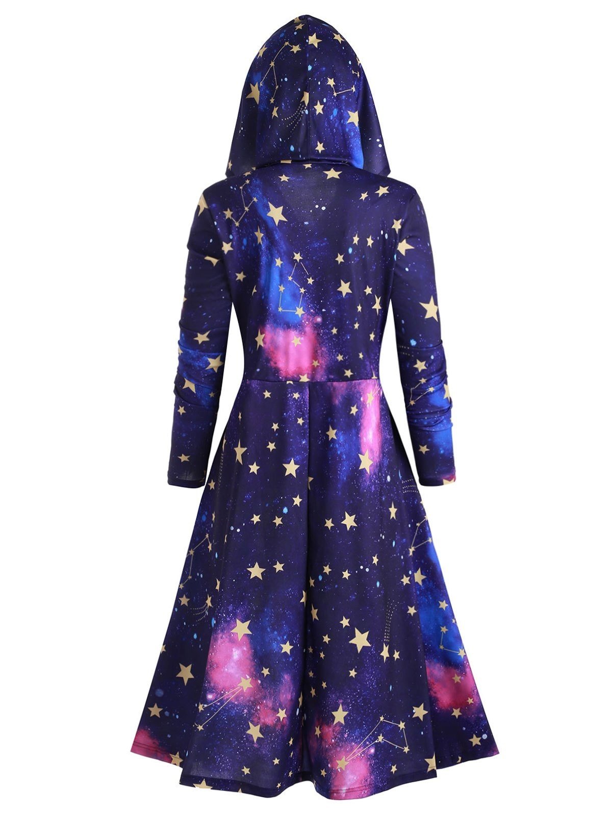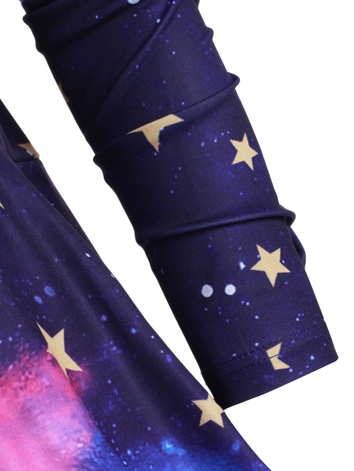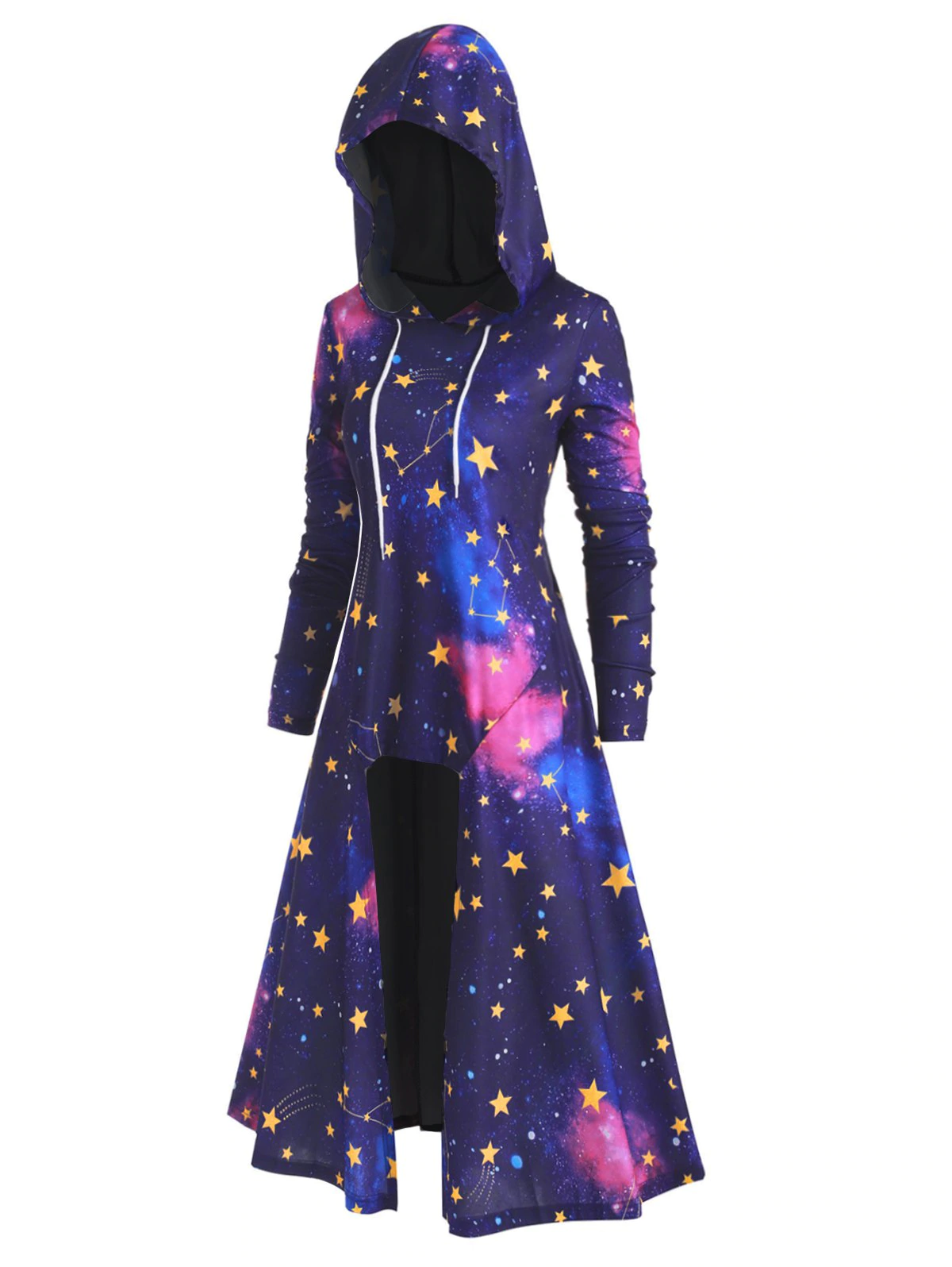 Plus Size Drawstring 3D Galaxy High Low Long Hoodie