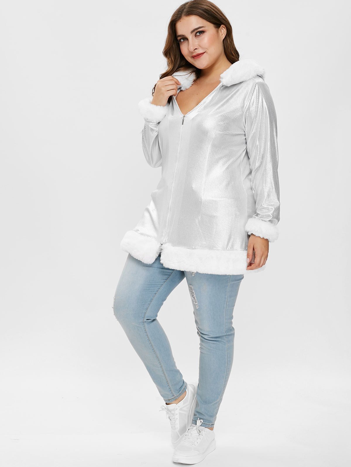 2 reviews for Plus Size Faux Fur Panel Hooded Coat