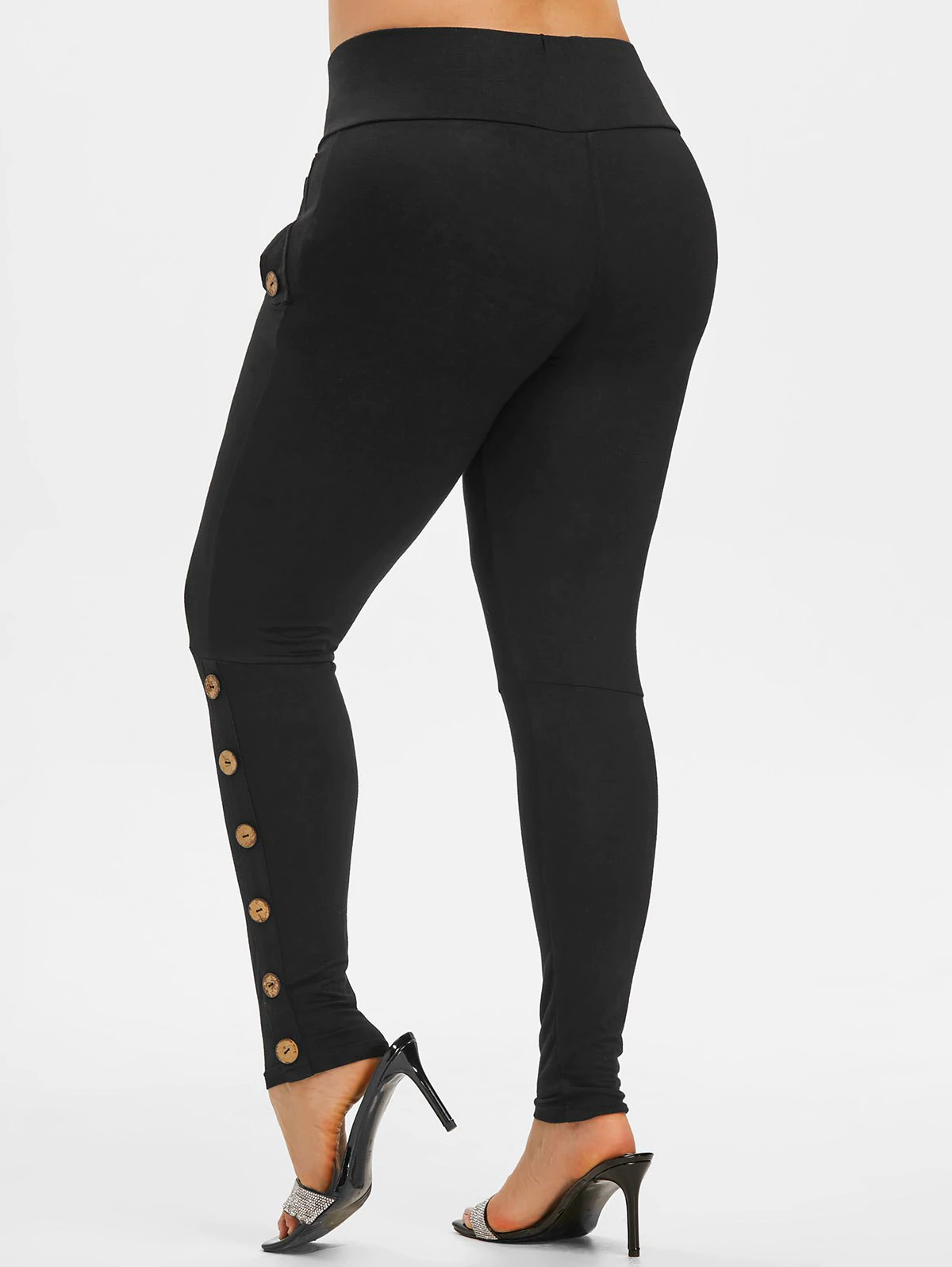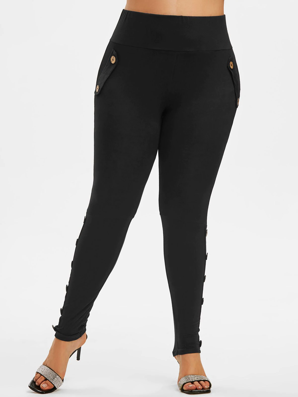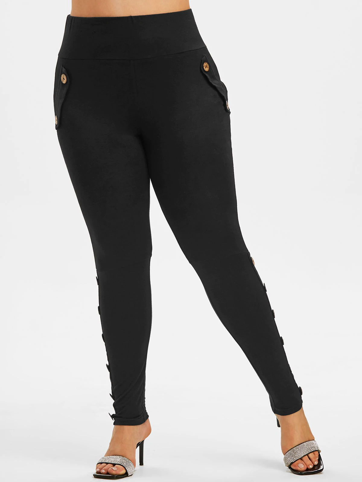 Plus Size Flap Detail Mock Button Leggings