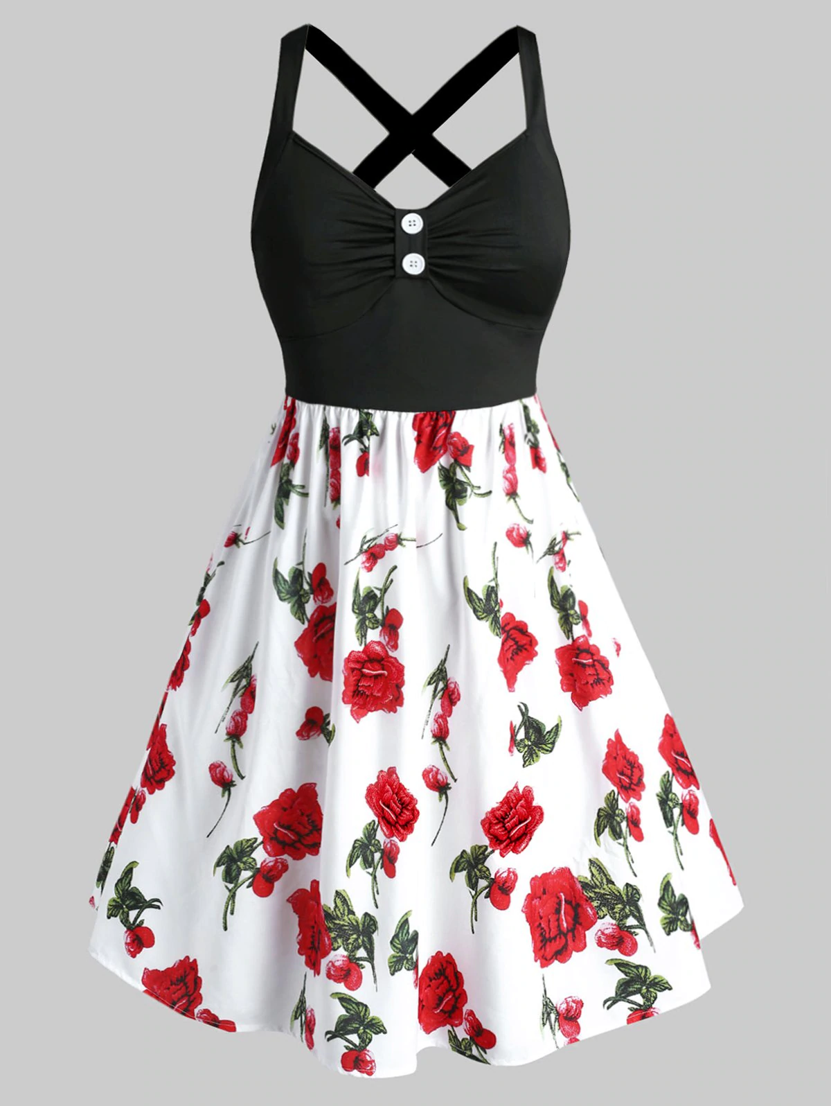 Plus Size Floral Print Crisscross Dress