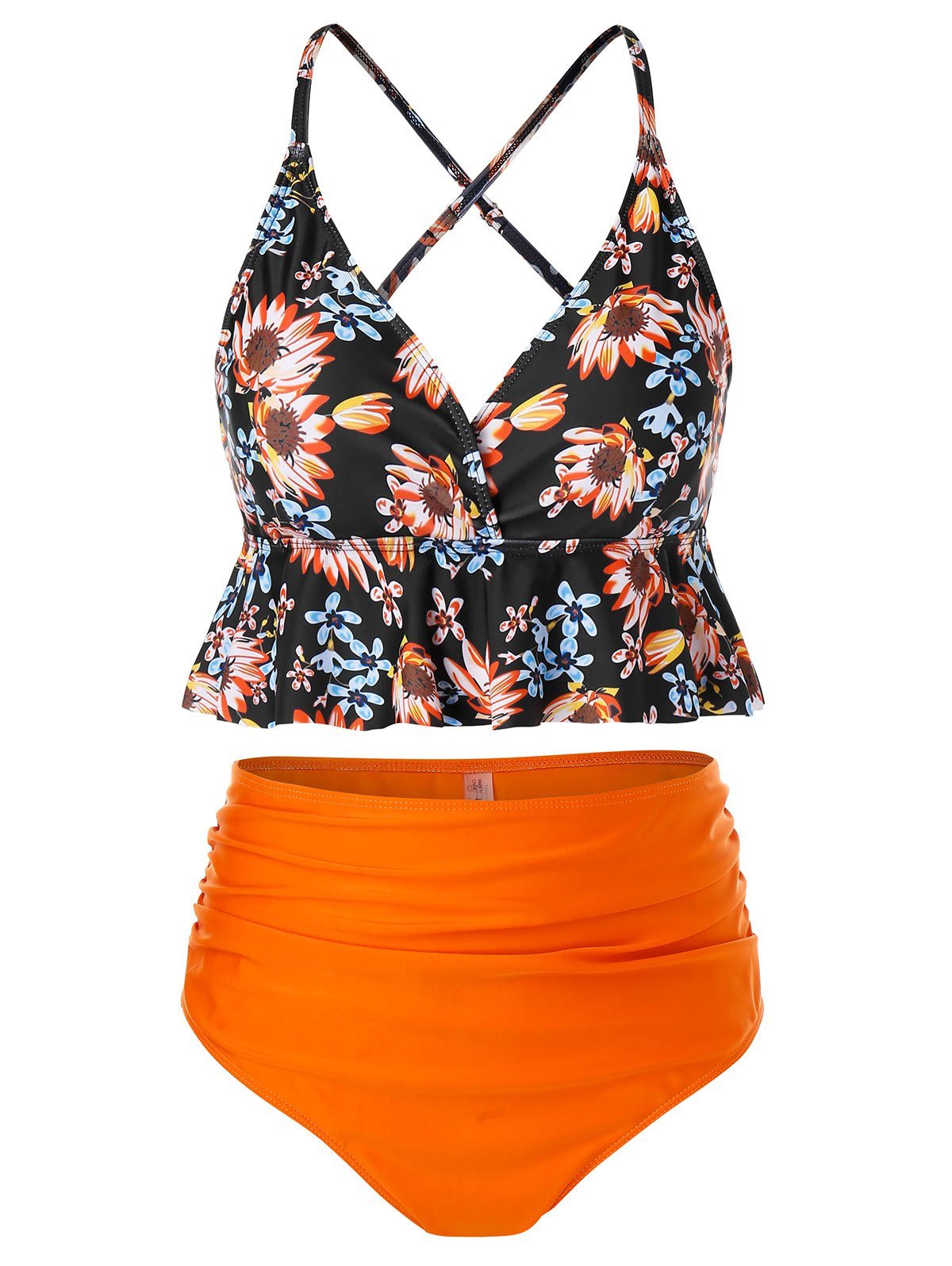 Plus Size Floral Print Flounce High Waist Tankini Swimsuit