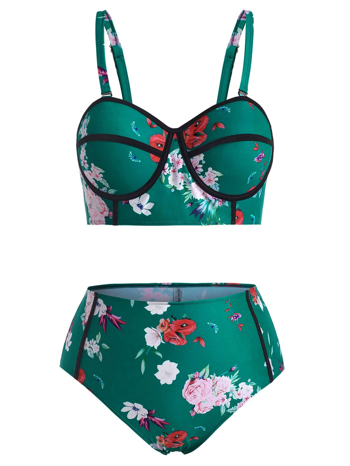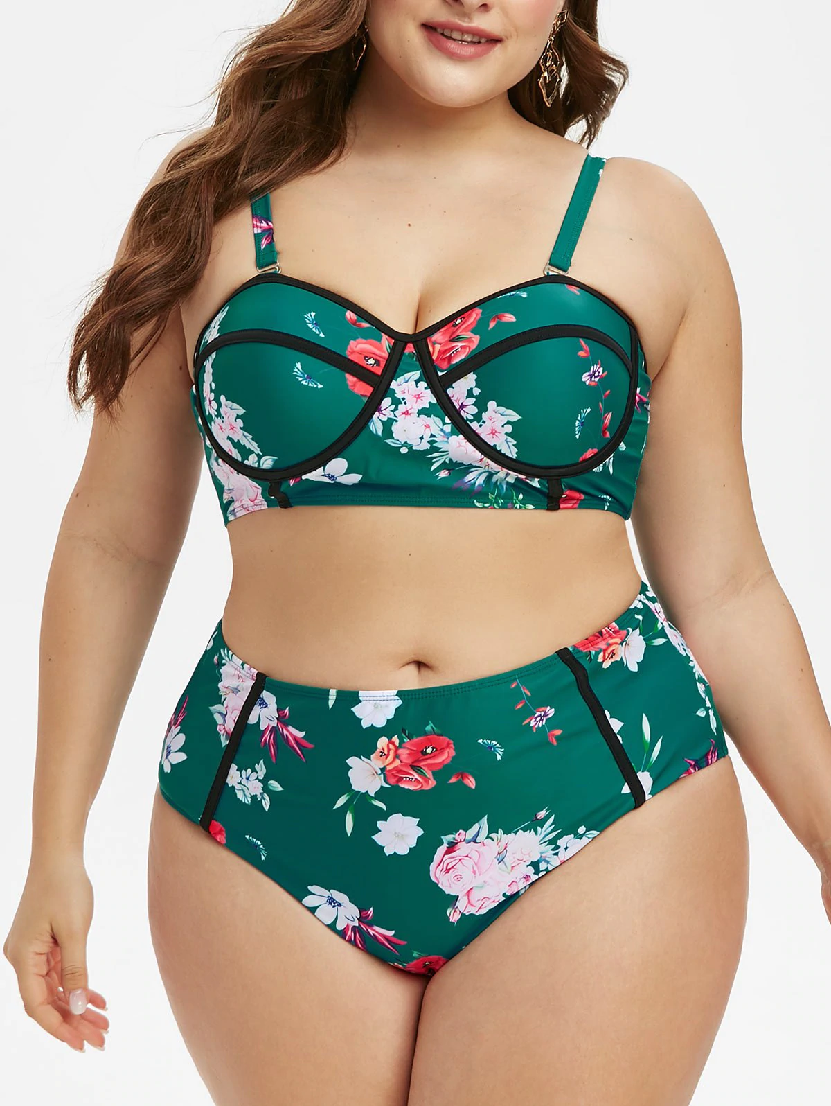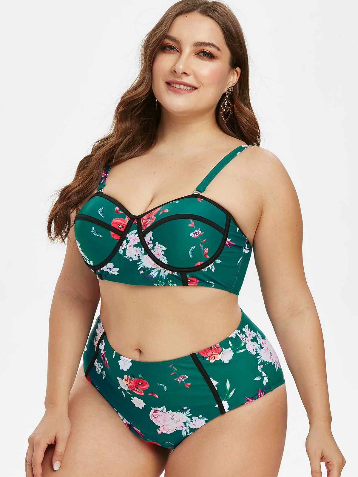 Plus Size Floral Print High Rise Bikini Set