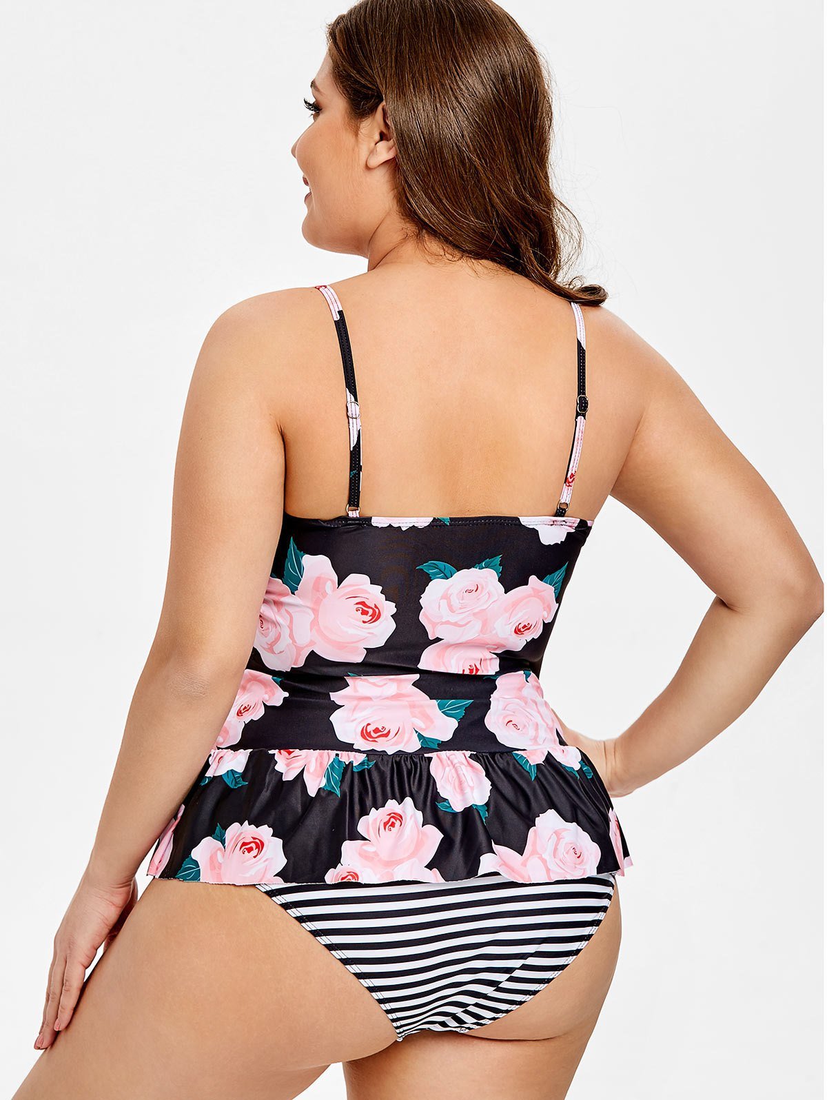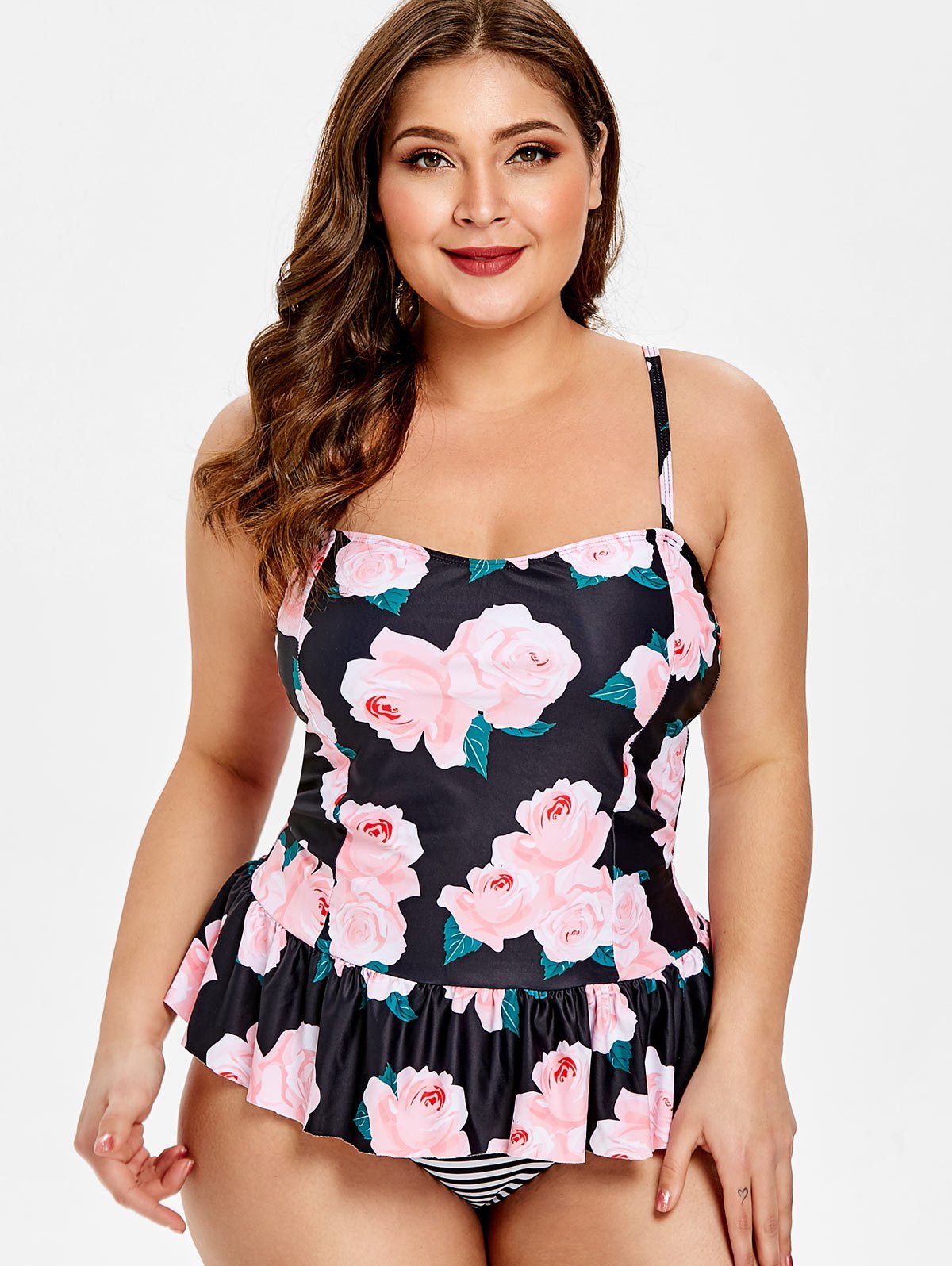It's the perfect combination of the two hottest prints-flower and stripe! And it's also a perfect suit for a fun day in the sun! The tankini top features pretty flowers with a peplum flounced hemline and slender shoulder straps adjusted for the desired comfy fit. Includes a pair of striped briefs to complete the on-trend beach style.