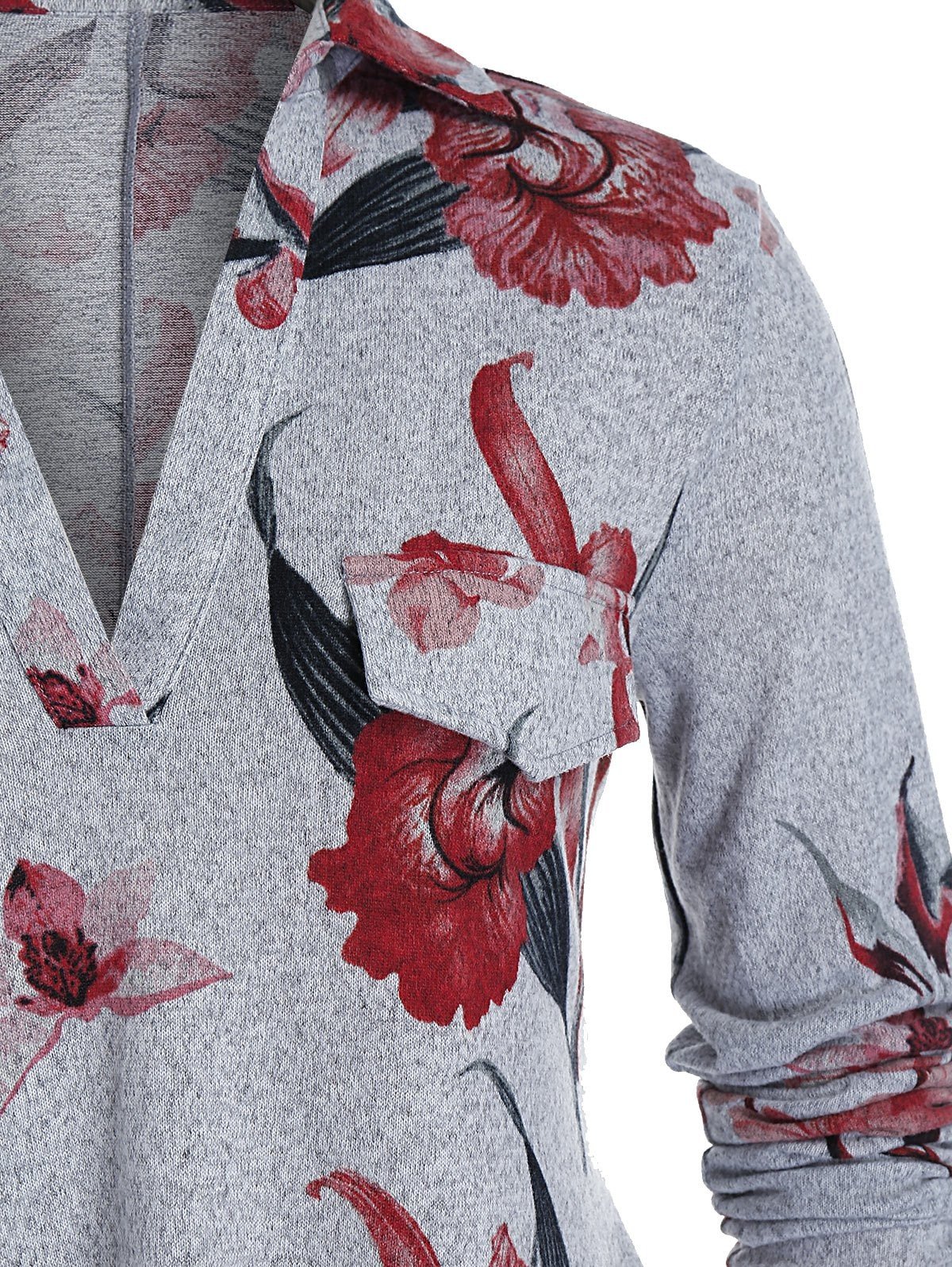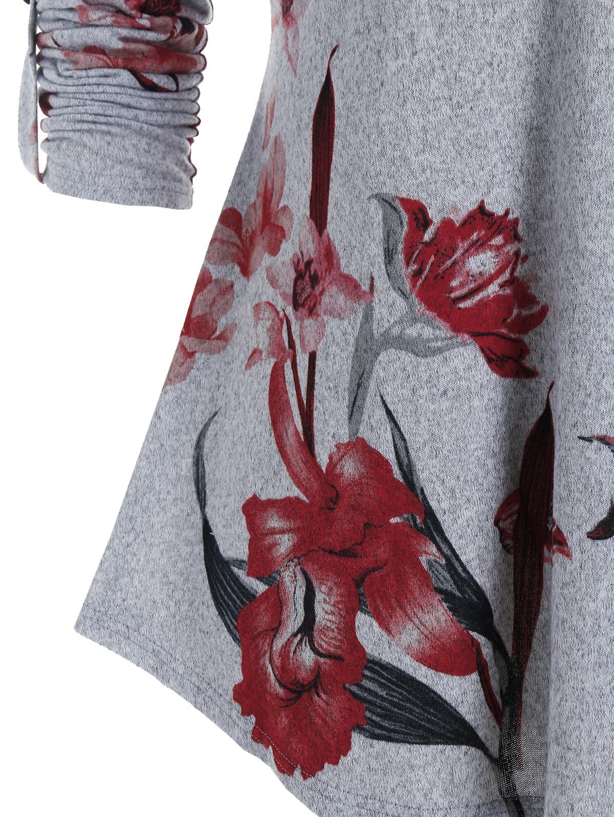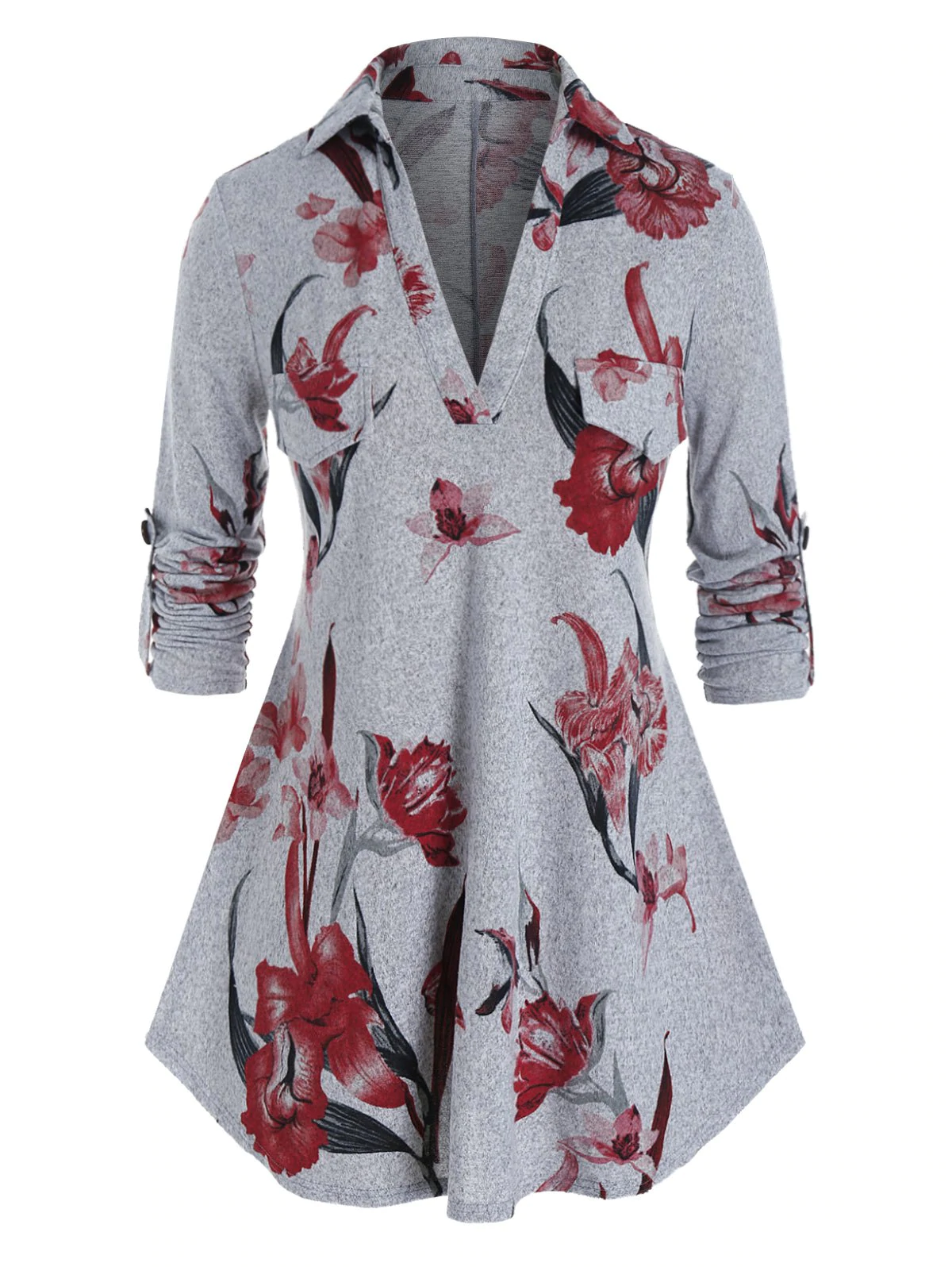 Plus Size Flower Print Knit Roll Up Sleeve Tunic Tee