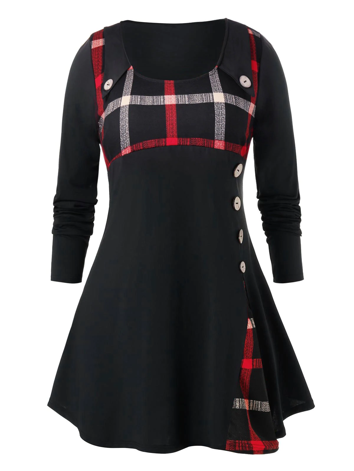 Plus Size Grid Pattern Button Longline High Waist Shirt