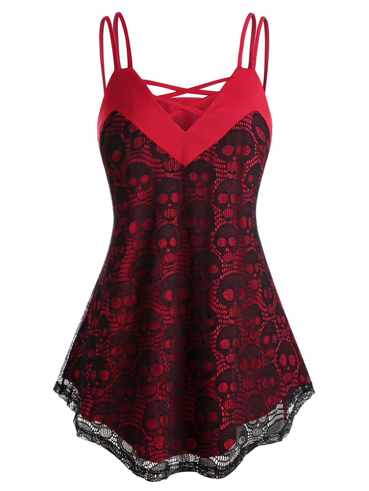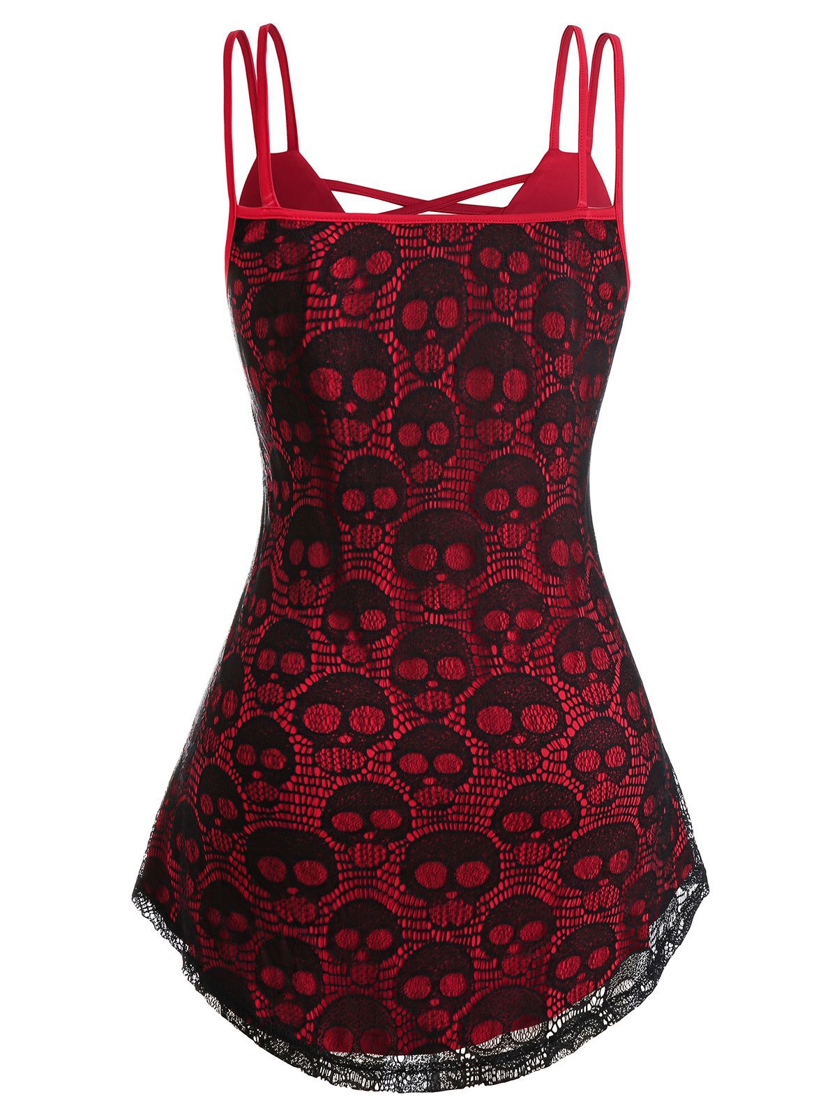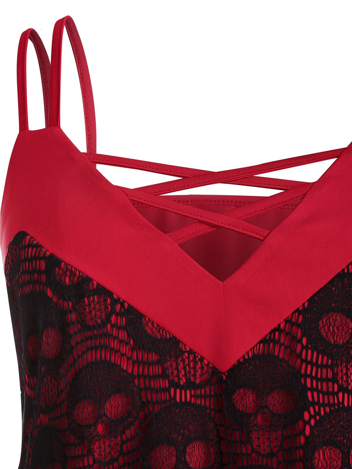 Plus Size Halloween Criss Cross Skull Lace Tank Top