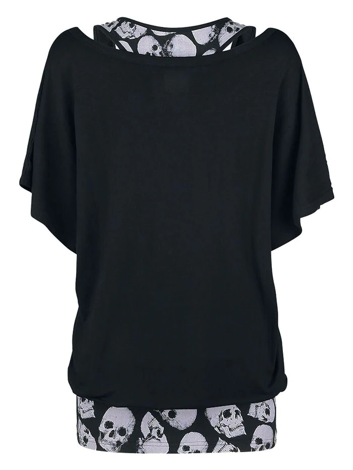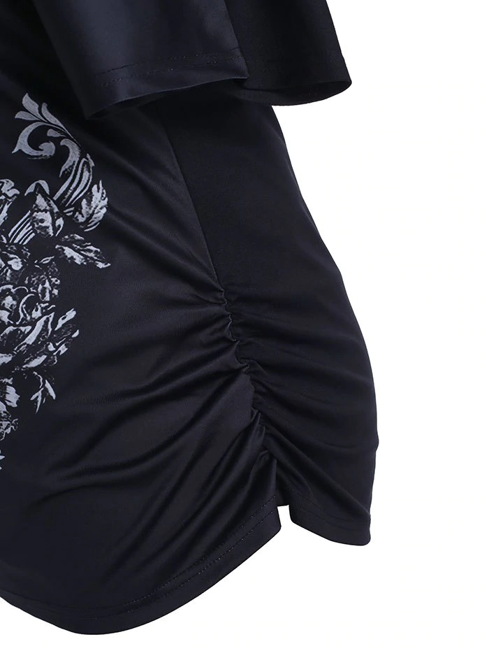 Plus Size Halloween Floral Skull Print T-shirt and Tank Top Set