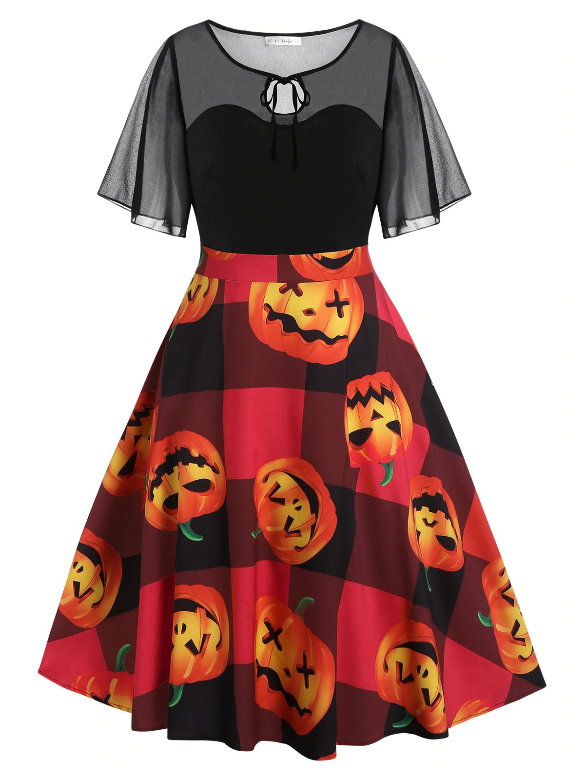 Plus Size Halloween Pumpkin Face Print Vintage Pin Up Dress