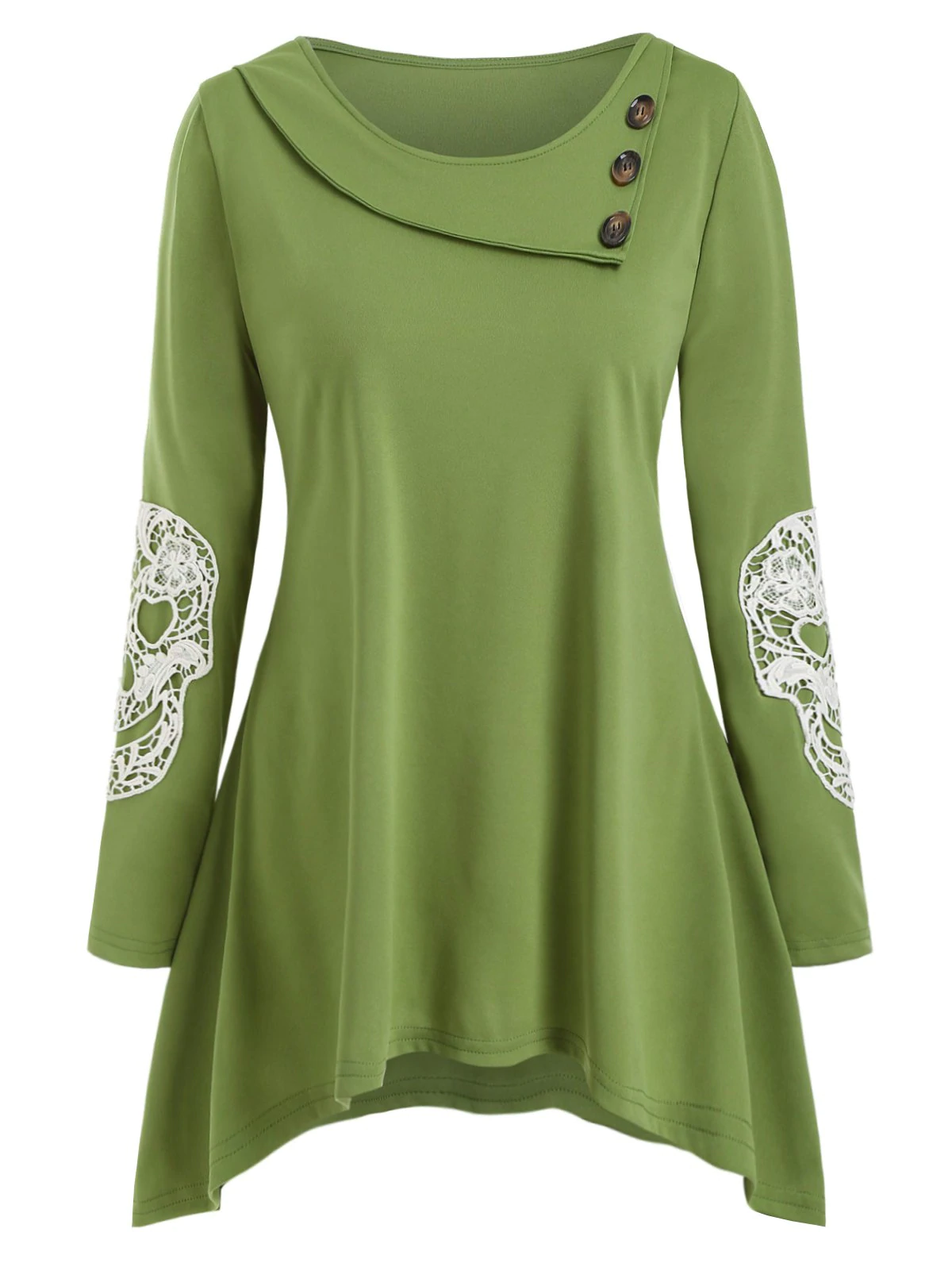 Plus Size Halloween Skull Lace Insert Asymmetric T Shirt