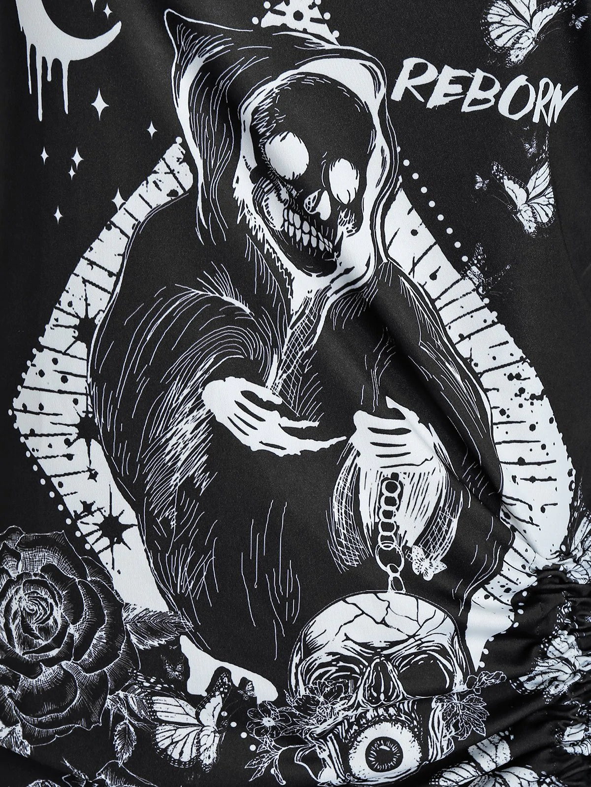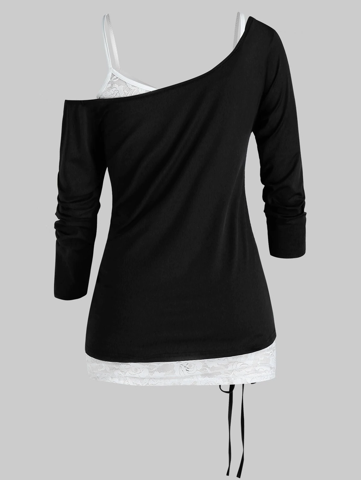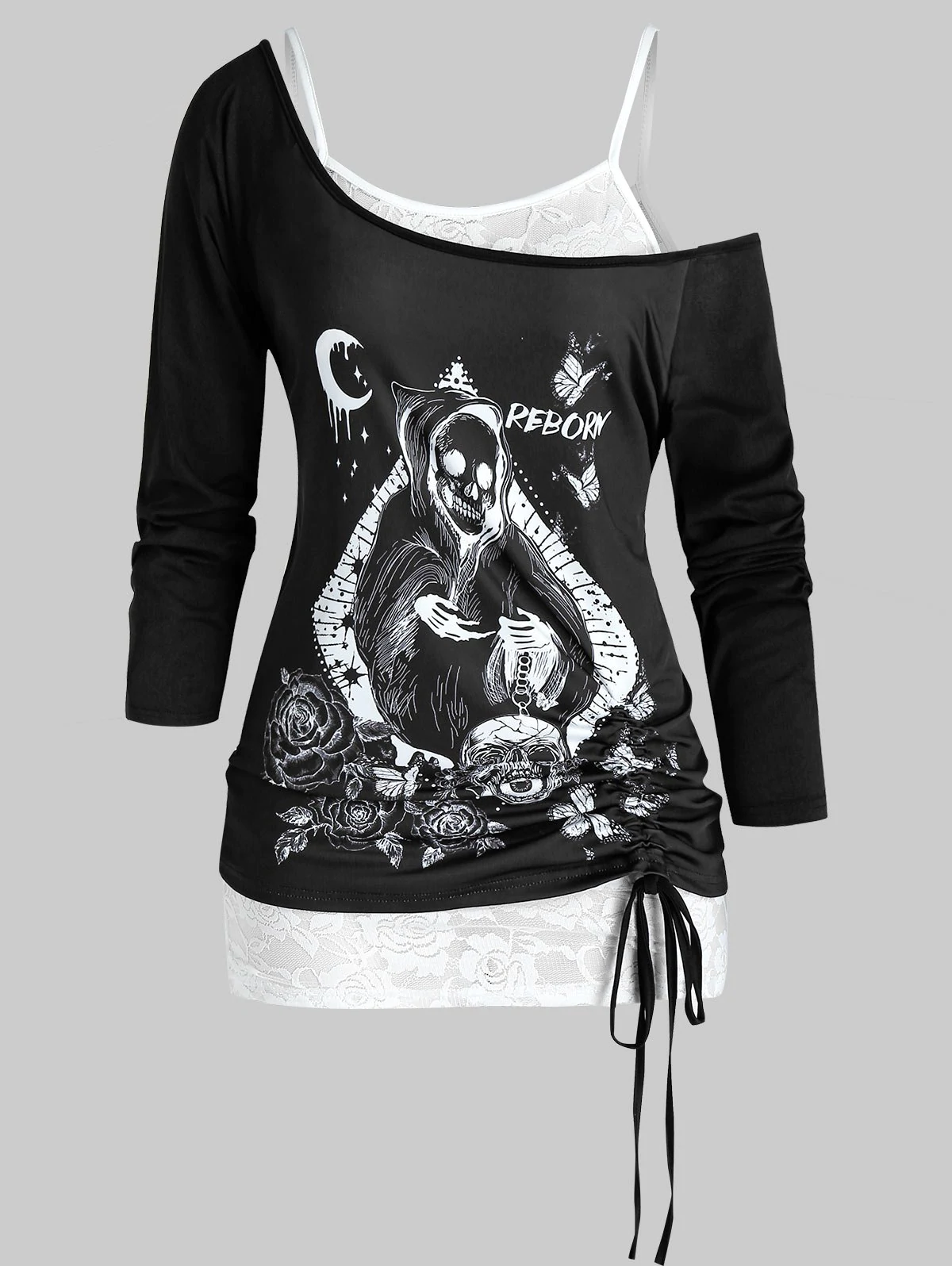 Plus Size Halloween Skull Skew Collar T-shirt and Cami Top Set