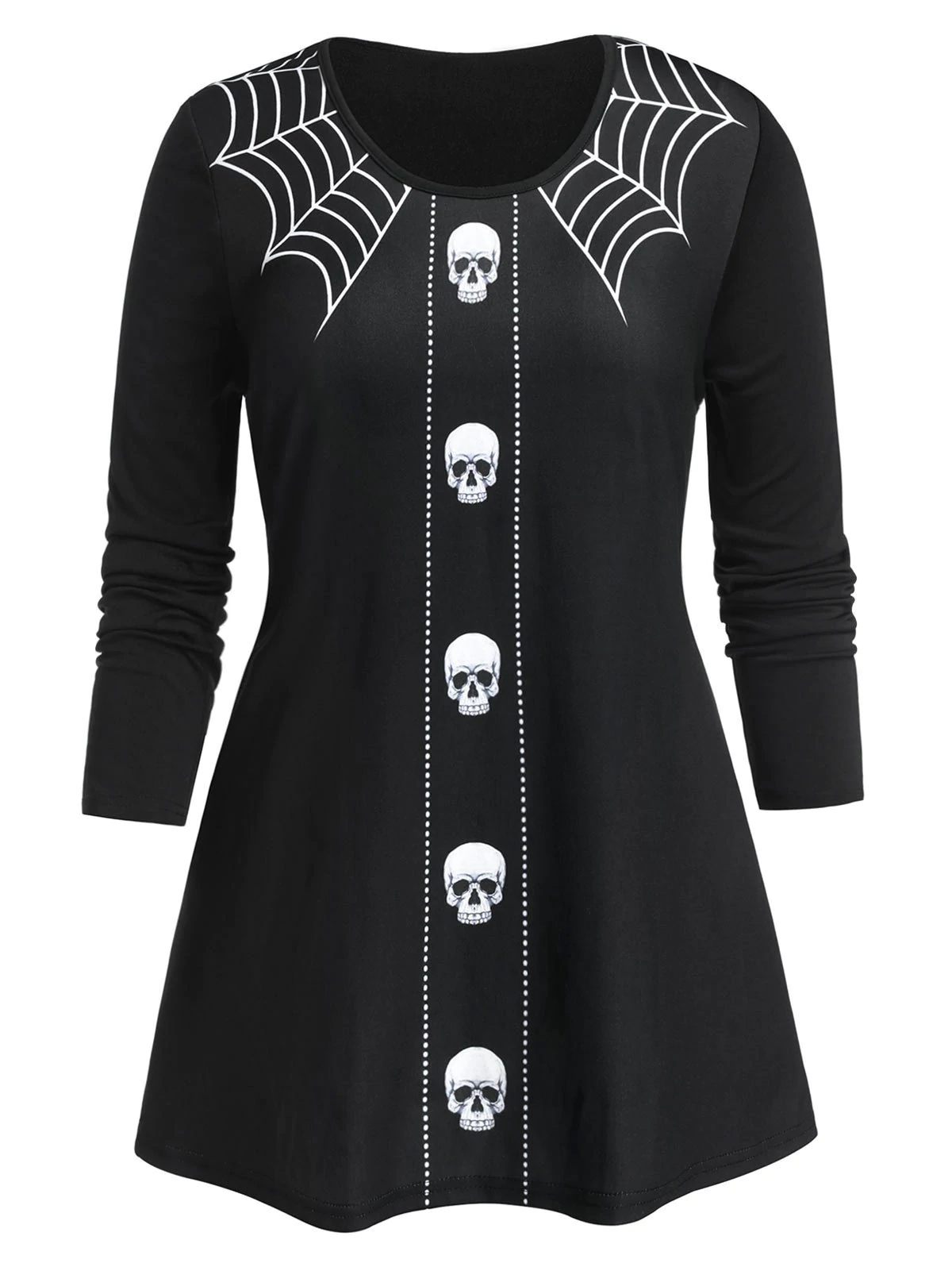 Plus Size Halloween Skull Spider Web Long Sleeve Tee