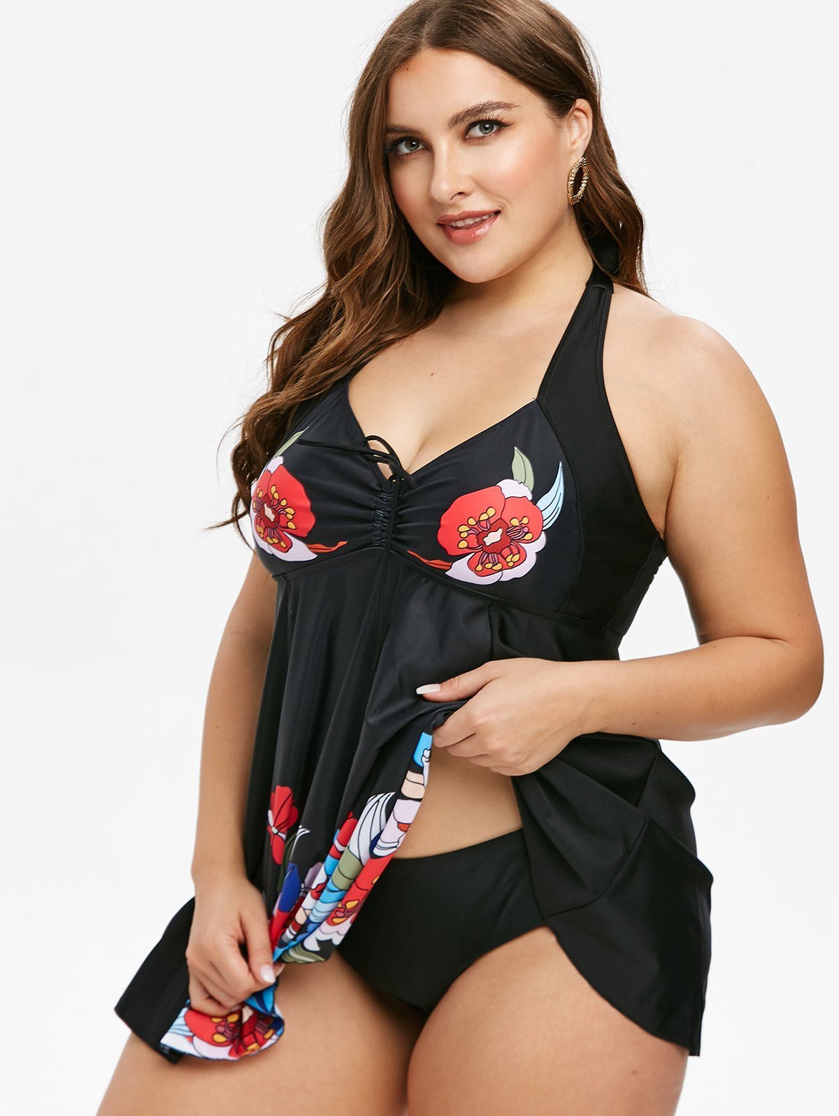 2 reviews for Plus Size Halter Floral Print Cinched Tankini Swimwear