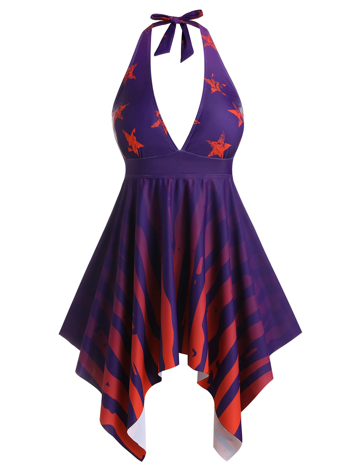 Plus Size Handkerchief Star Striped Halter Tie Tankini Swimwear