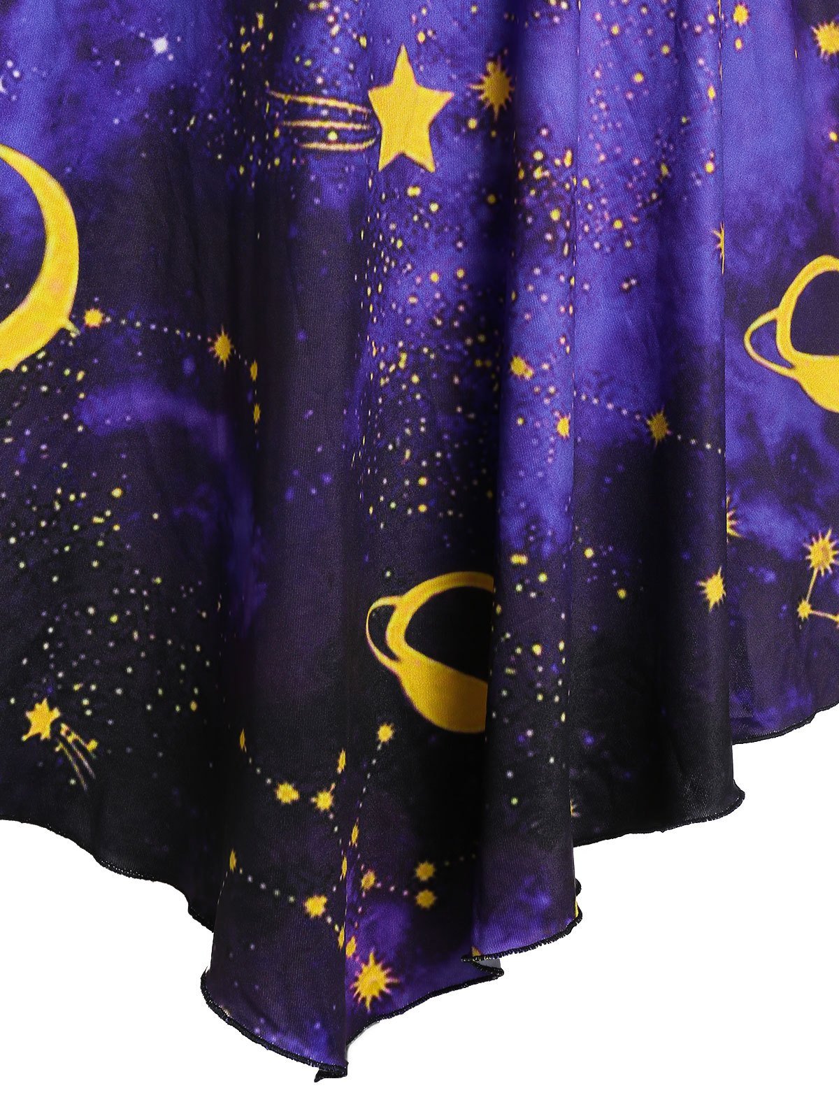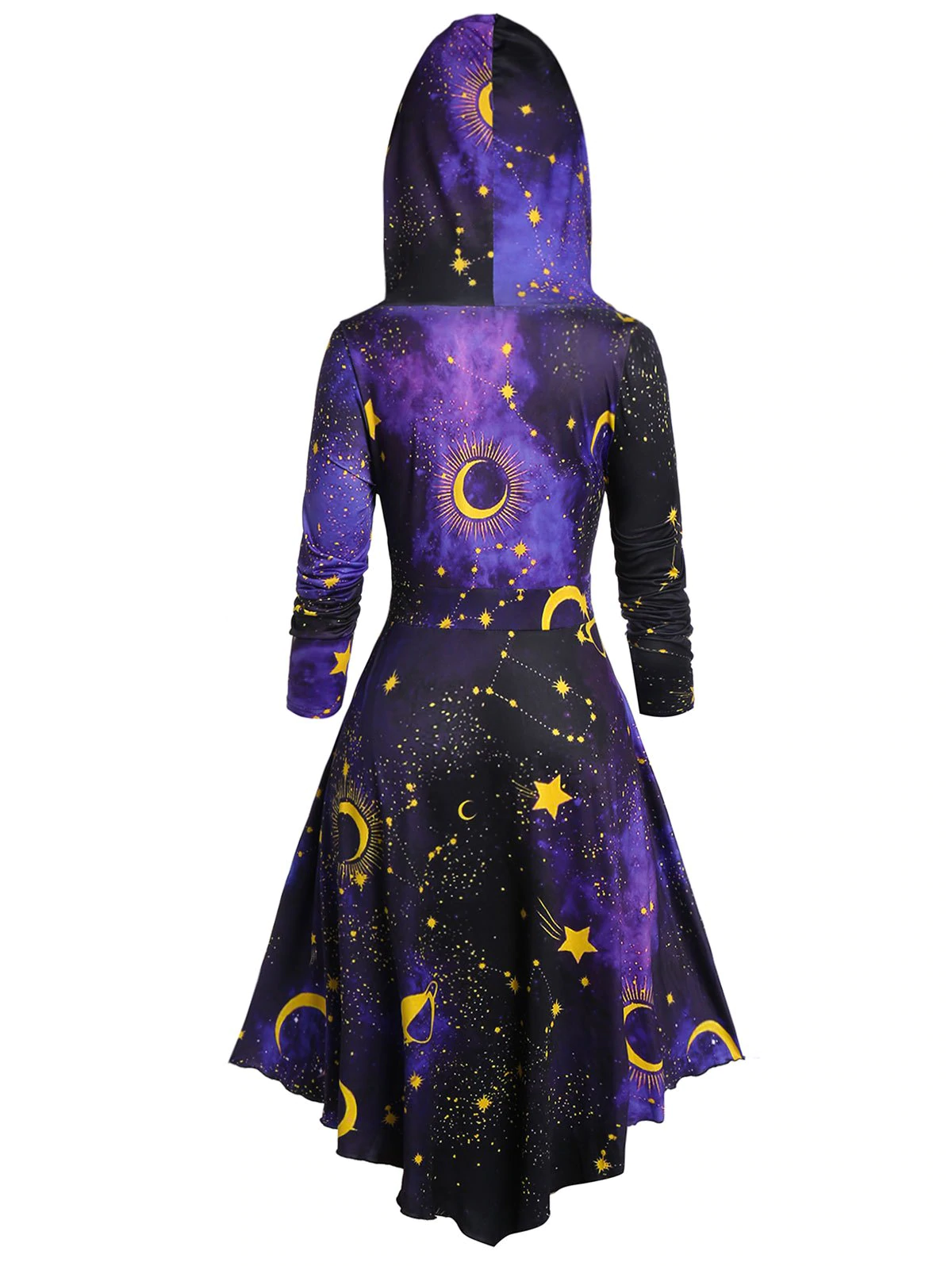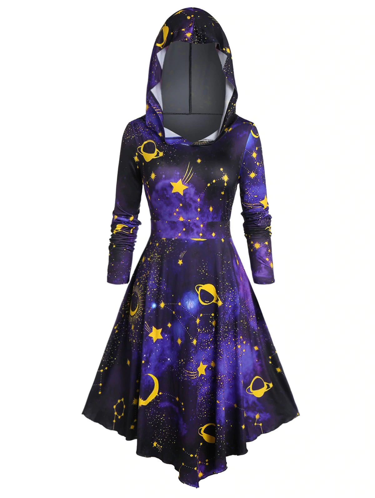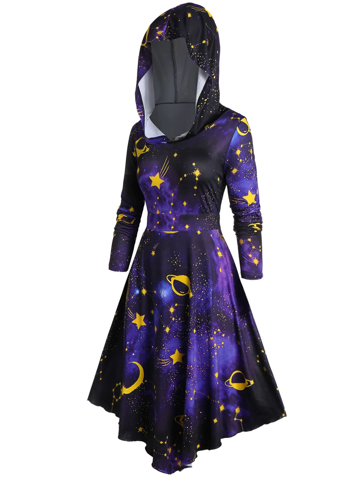 Plus Size Hooded 3D Galaxy Print Halloween Midi Dress