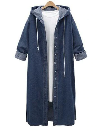 1 review for Plus Size Hooded Drawstring Long Denim Jacket