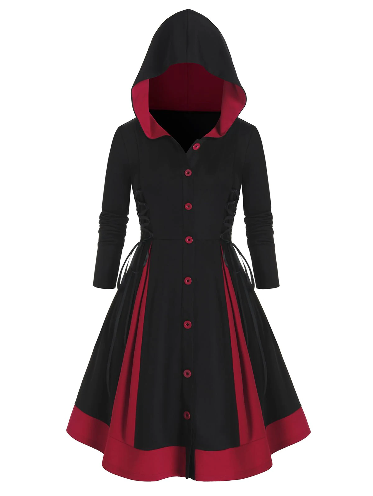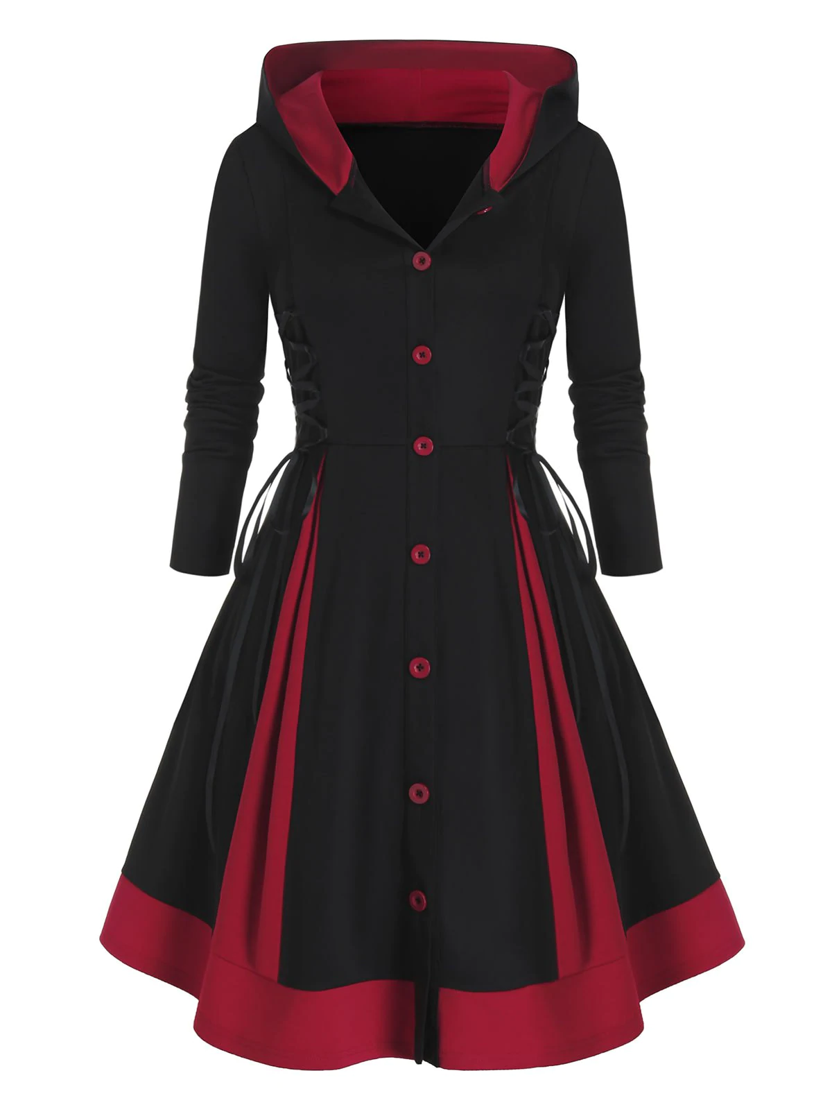 Plus Size Hooded Lace-up Single Breasted A Line Coat