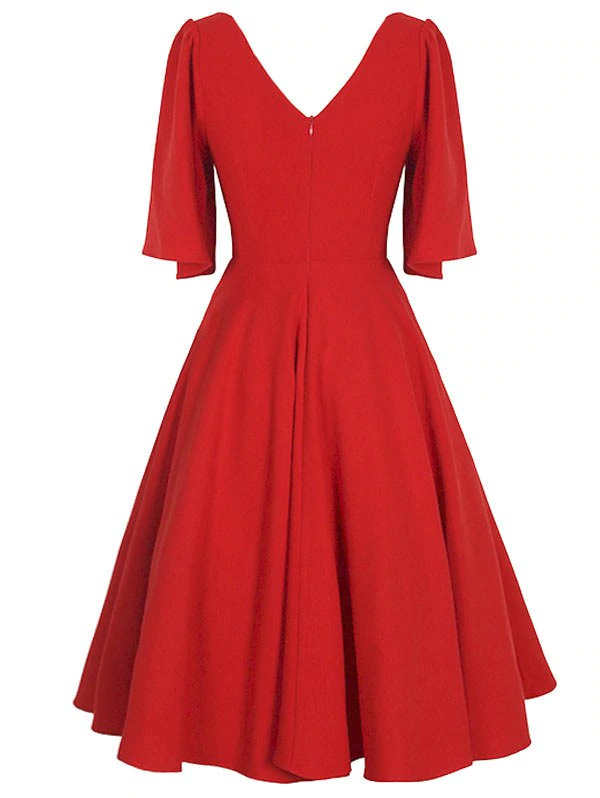 Simple yet elegant, this plain dress has chic double V design for a sense of sexy charming look. The three quarter kimono sleeves are graceful. And the wide waistband creates a figure-flattering empire waist illusion, as well as highlighting your slim waist.