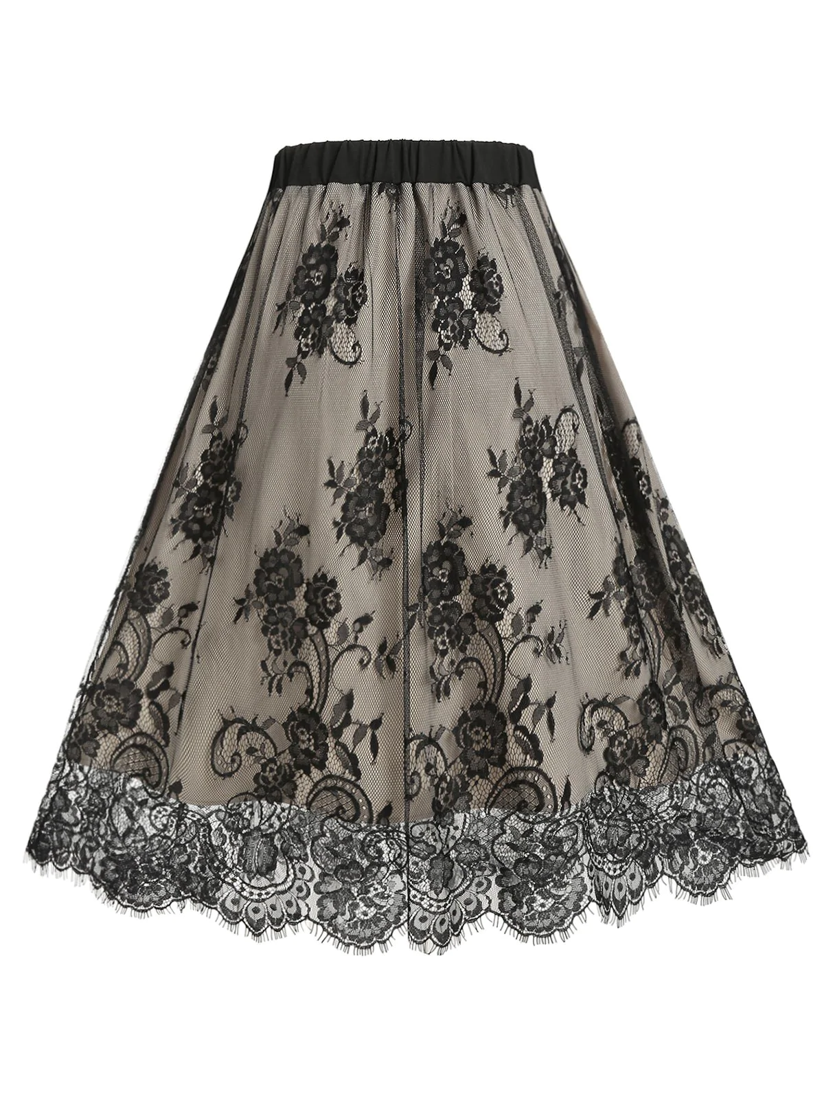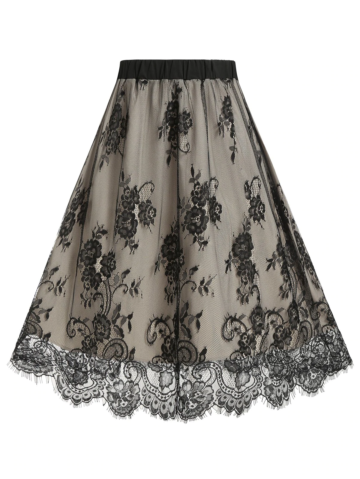 Plus Size Lace Eyelash Knee Length Skirt