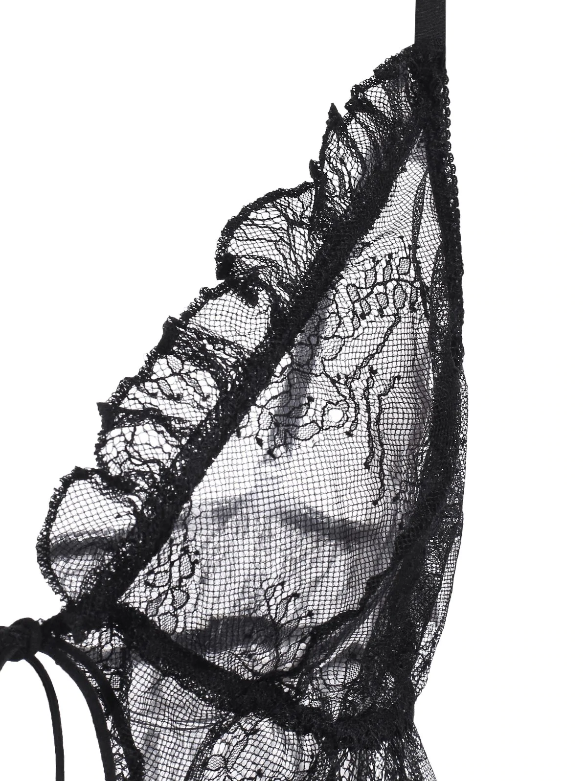Plus Size Lace Flounce See Thru Sexy Lingerie Set
