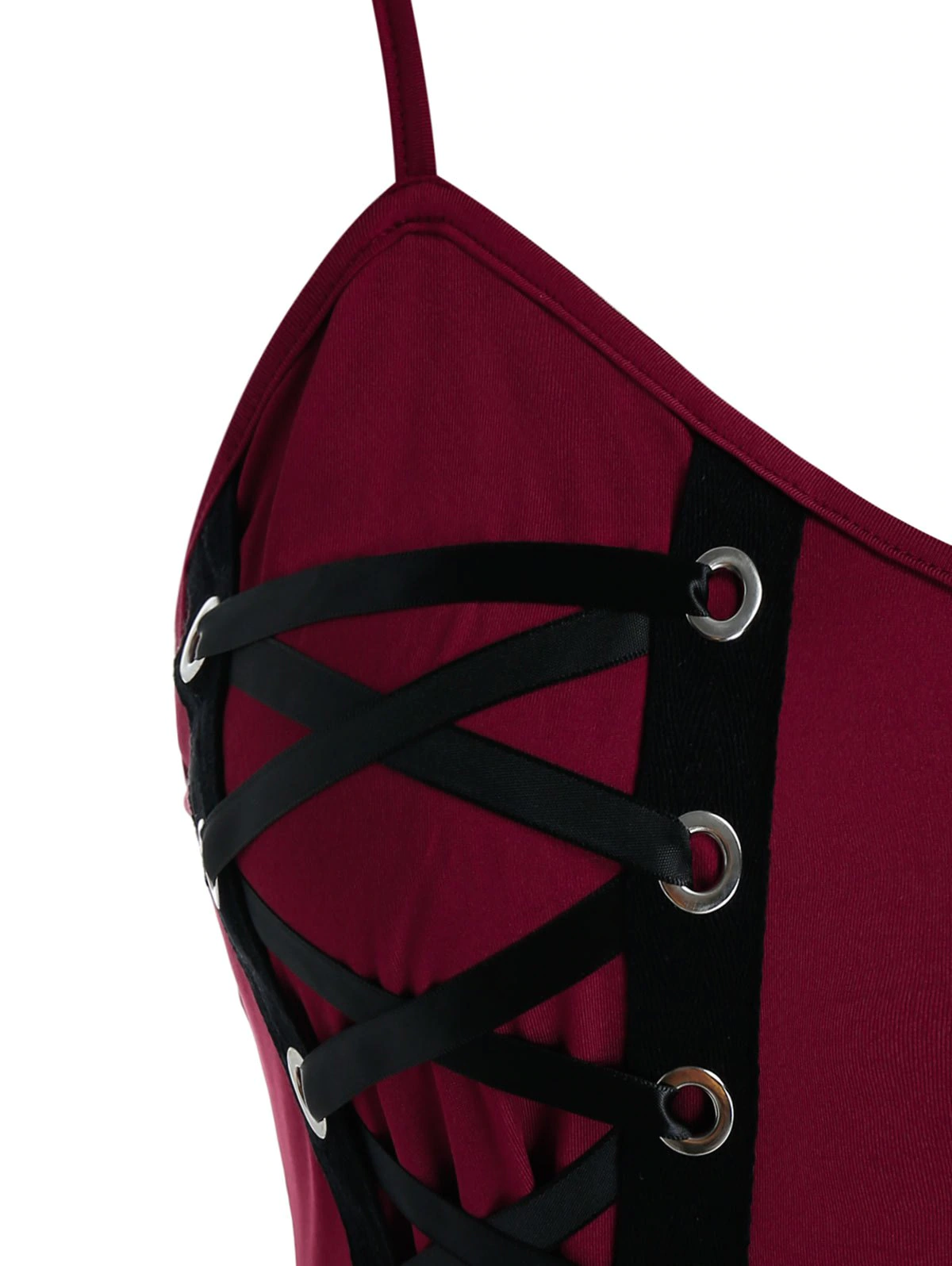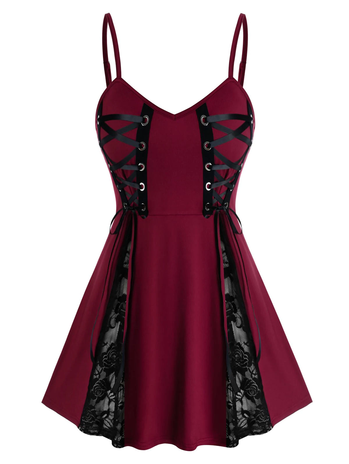 Plus Size Galaxy Lattice Lace-up A Line Dress