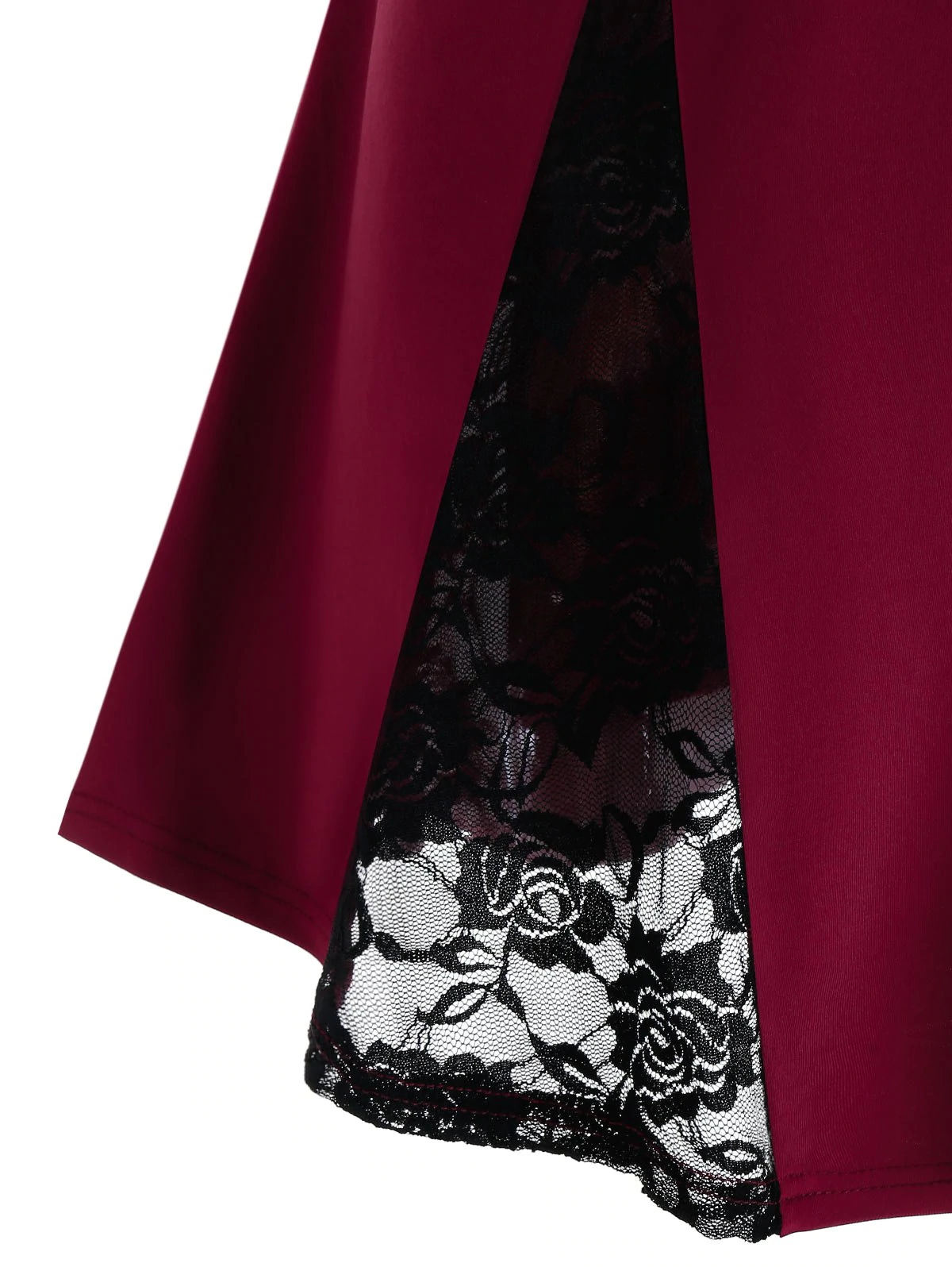 Plus Size Grommet Lace Insert Long Sleeve Midi Dress