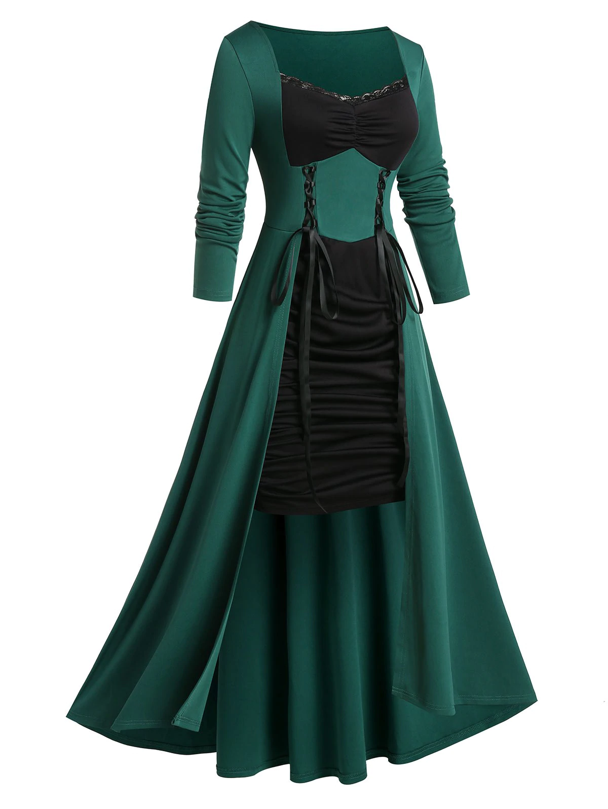 Plus Size Lace Insert Corset Ruched Overlay Dress