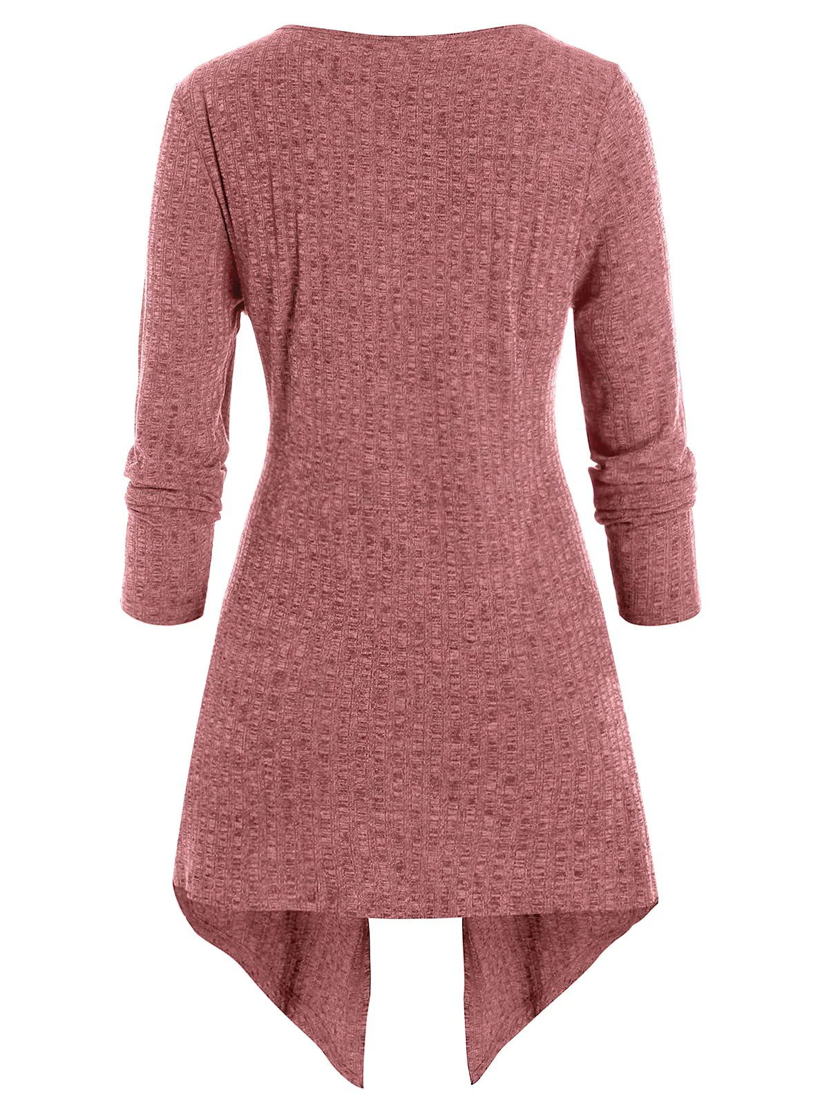 Plus Size Lace Insert Draped Long Sleeve Knitted Top