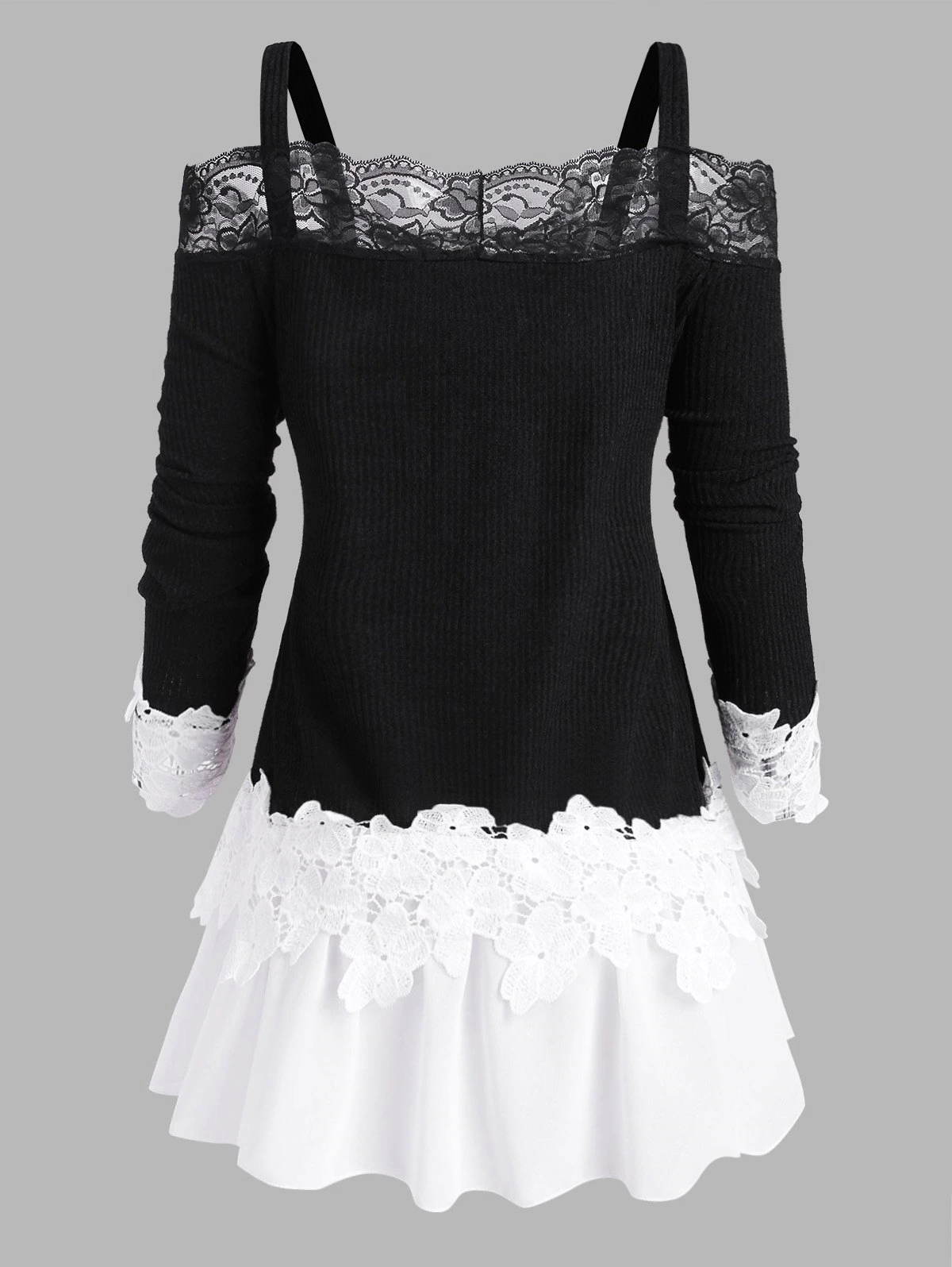Plus Size Lace Insert Extender Cold Shoulder Knitwear