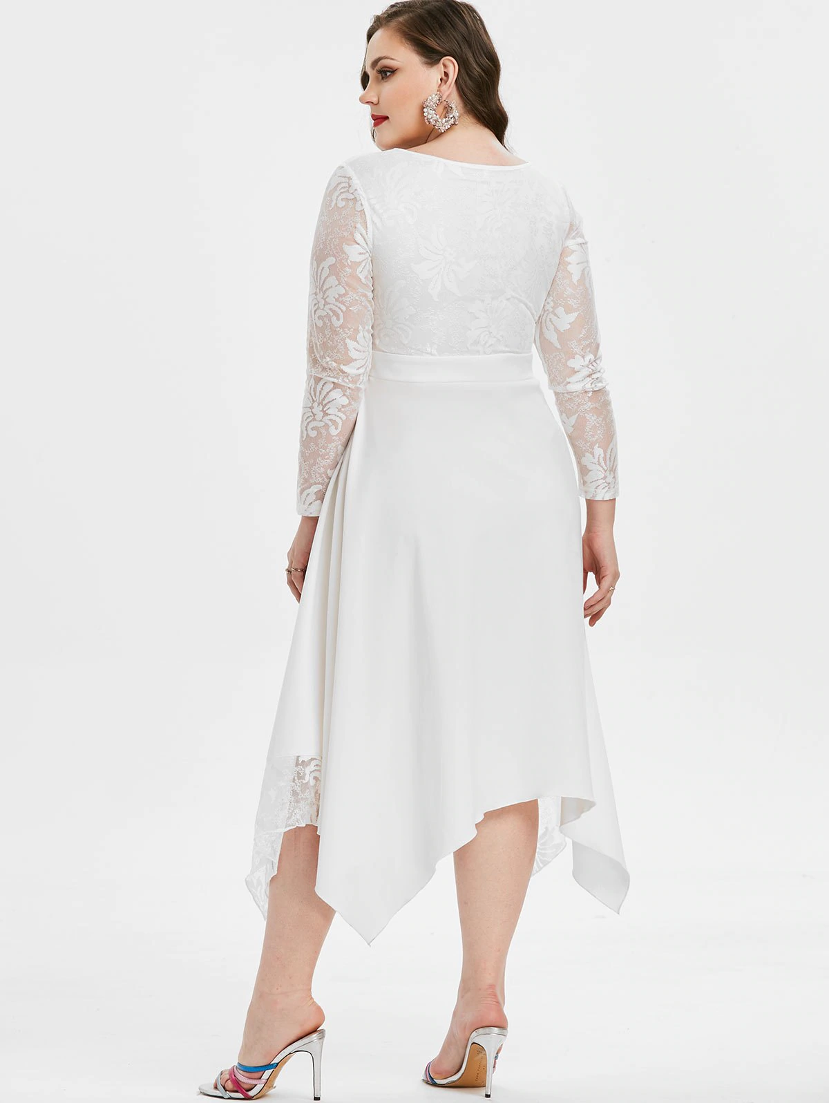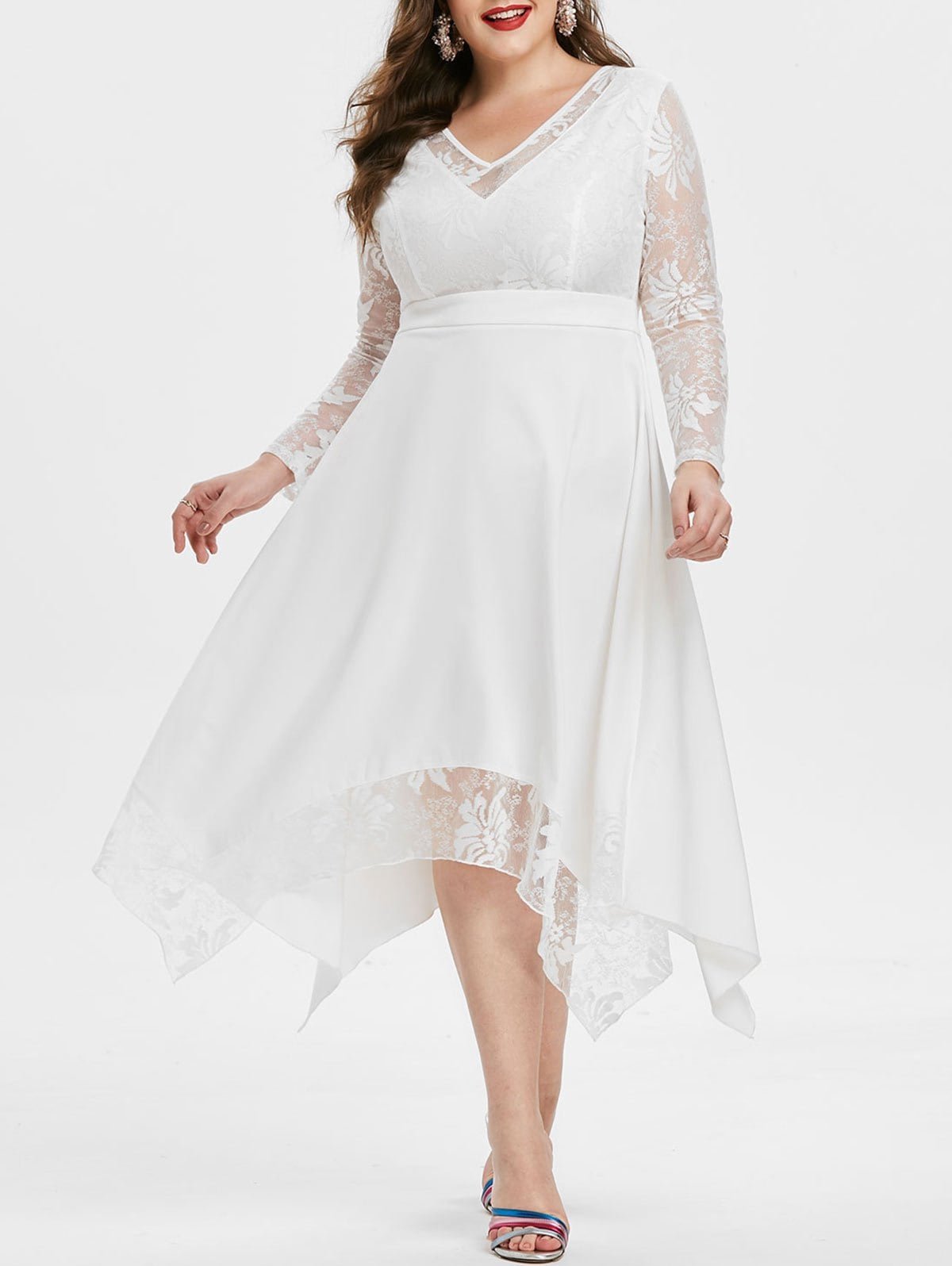 Plus Size V Neck Flare Sleeve High Low Long Dress