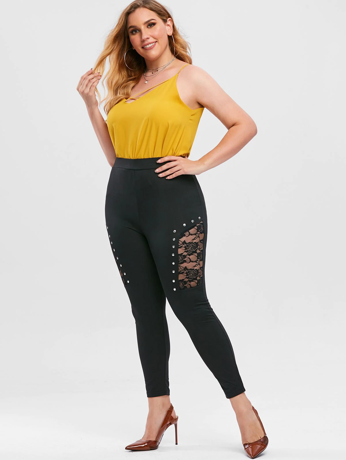 Plus Size Lace Insert Studded Pants