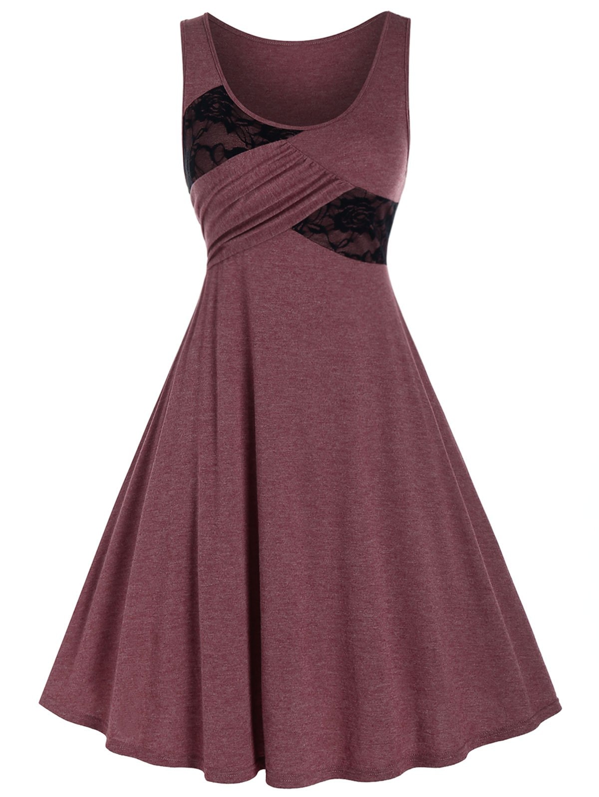 Plus Size Lace Inserted Ruched Asymmetric Dress