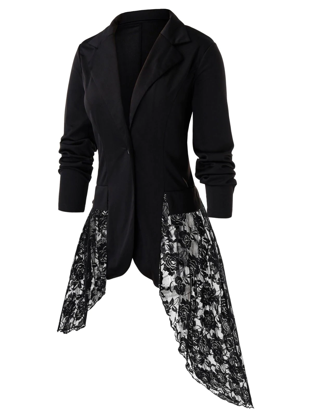 Plus Size Lace Panel Asymmetric Blazer