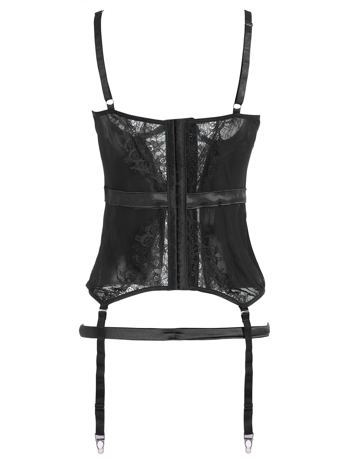 Plus Size Lace Panel Mesh Gartered Underwire Bustier Set