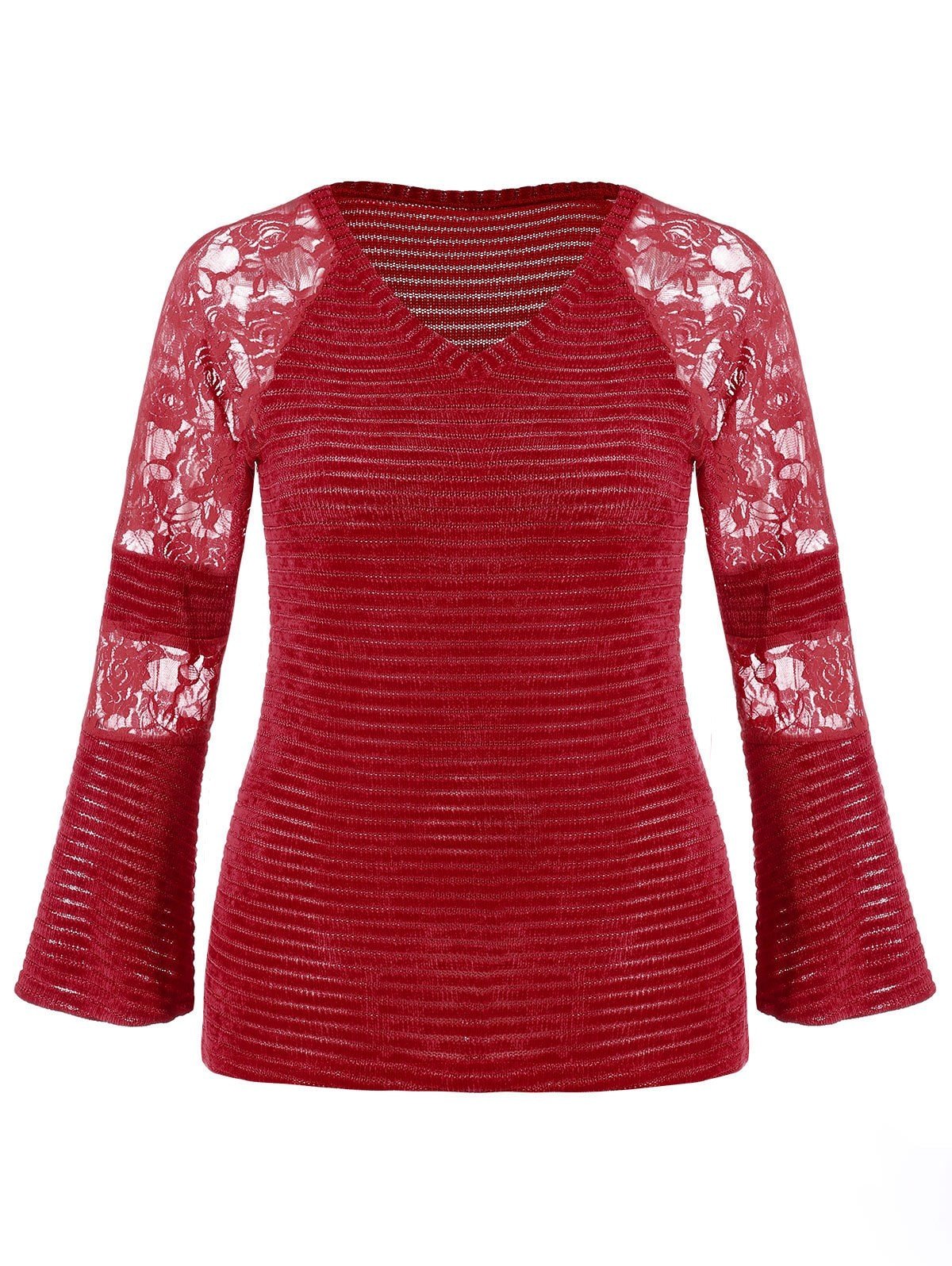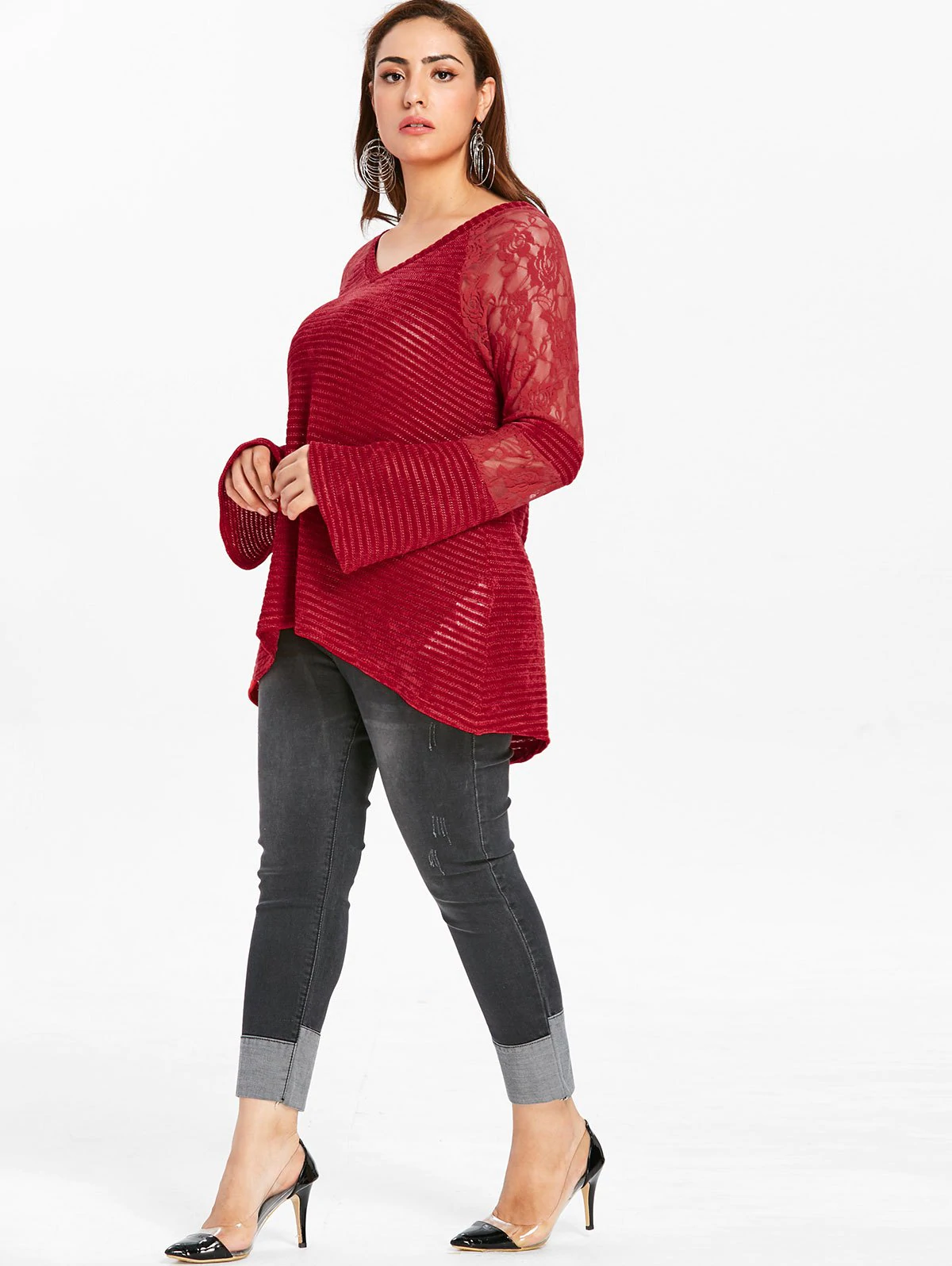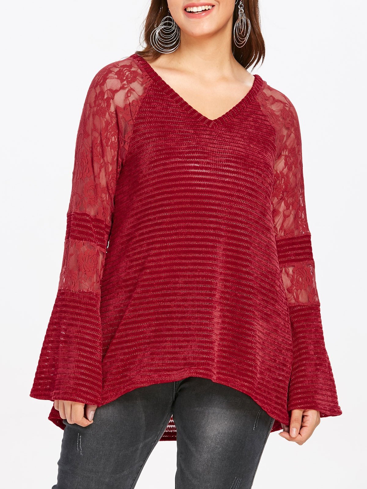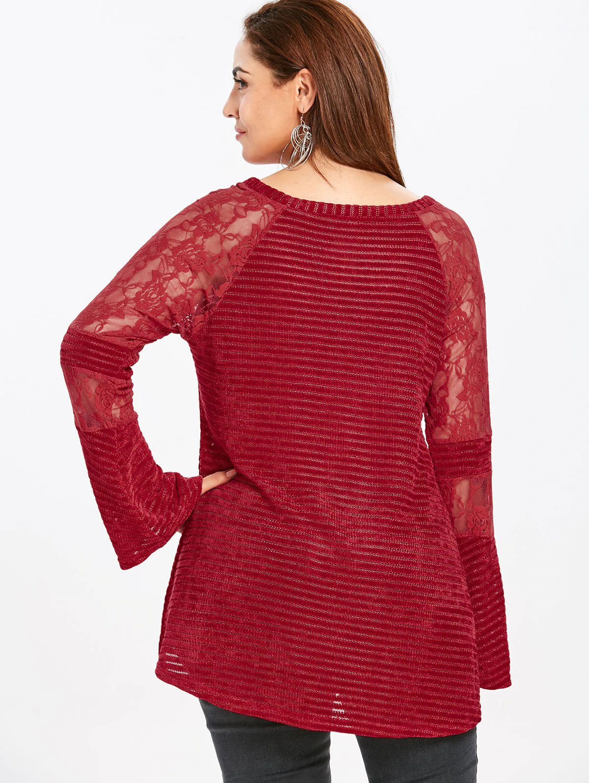 Plus Size Lace Panel Raglan Sleeve Knit Top