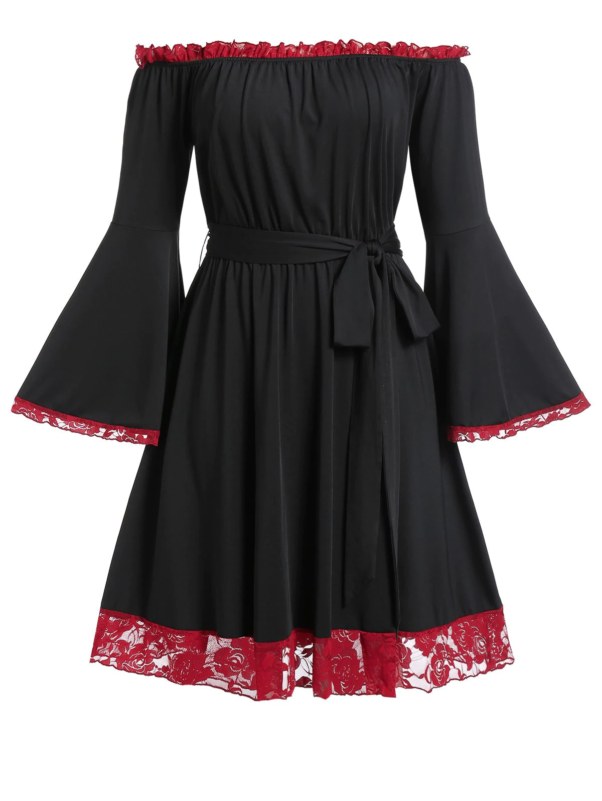 Plus Size Lace Trim Bell Sleeve Off The Shoulder Dress