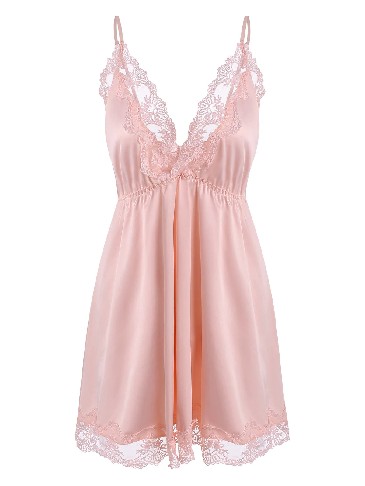 Plus Size Lace Trim Satin Nightdress