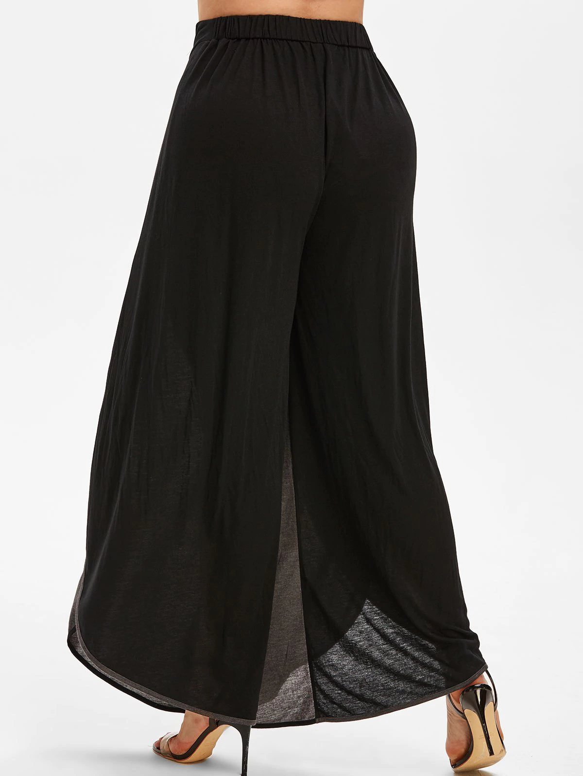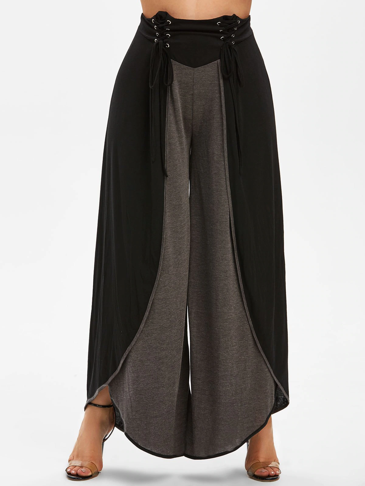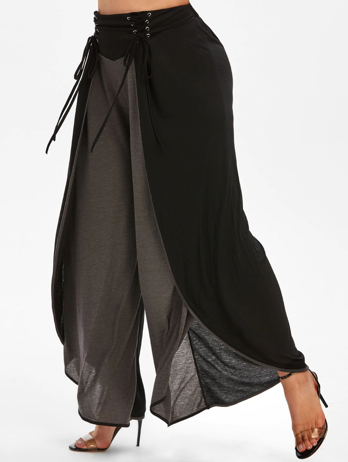 Plus Size Lace Up Two Tone Wide Leg Pants