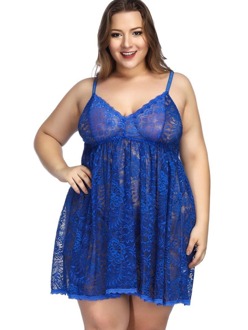 Plus Size Lingerie Sheer Lace Babydoll Set