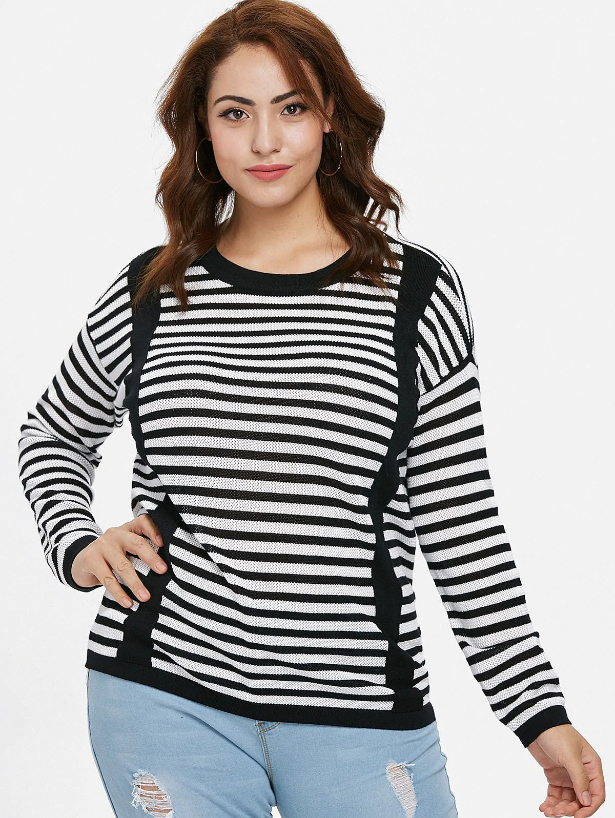 Plus Size Long Sleeve Striped Sweater