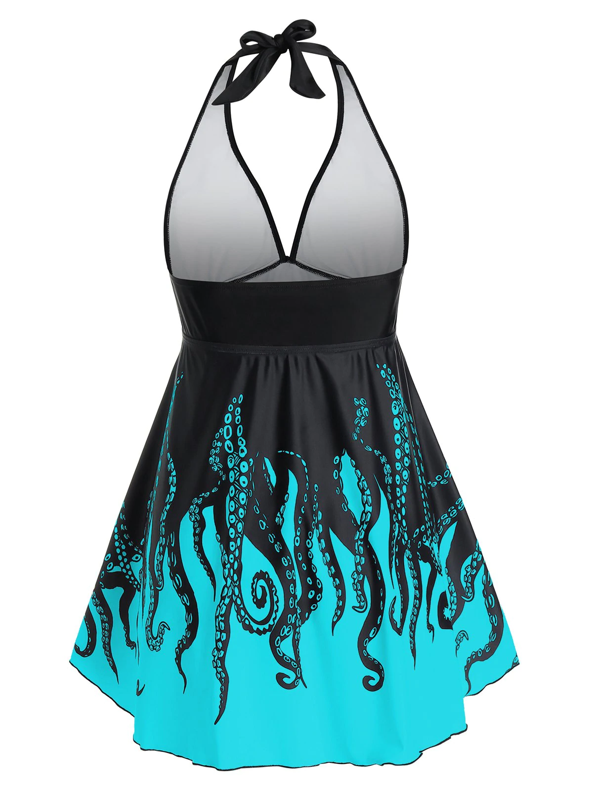 The octopus print will make you noticeable, and alluring low-cut and open back design adds a hint of sexy charm. The mid-rise bottom covers your butt nicely.