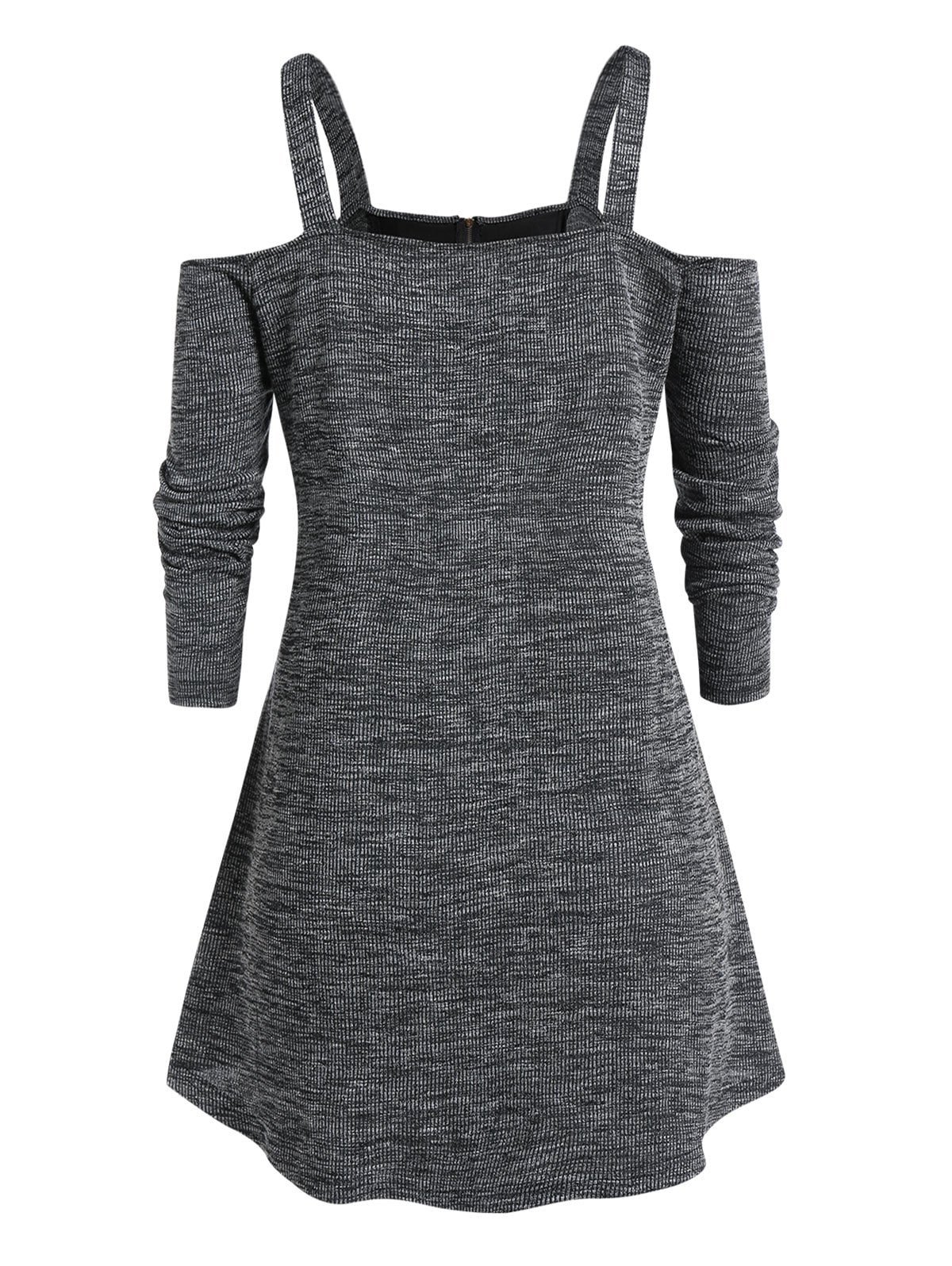 Plus Size Marled Open Shoulder Zippered Sweater