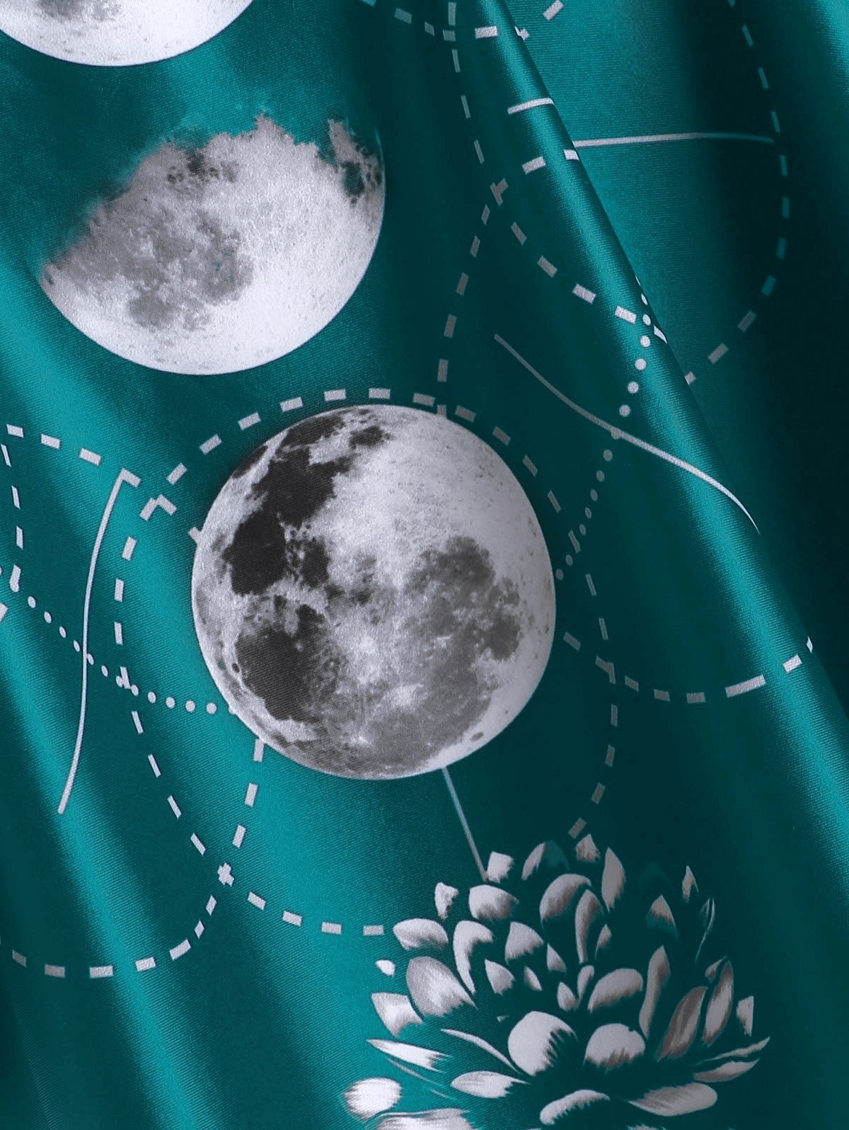 Plus Size Moon Phase Print Ruffled Tankini Swimwear