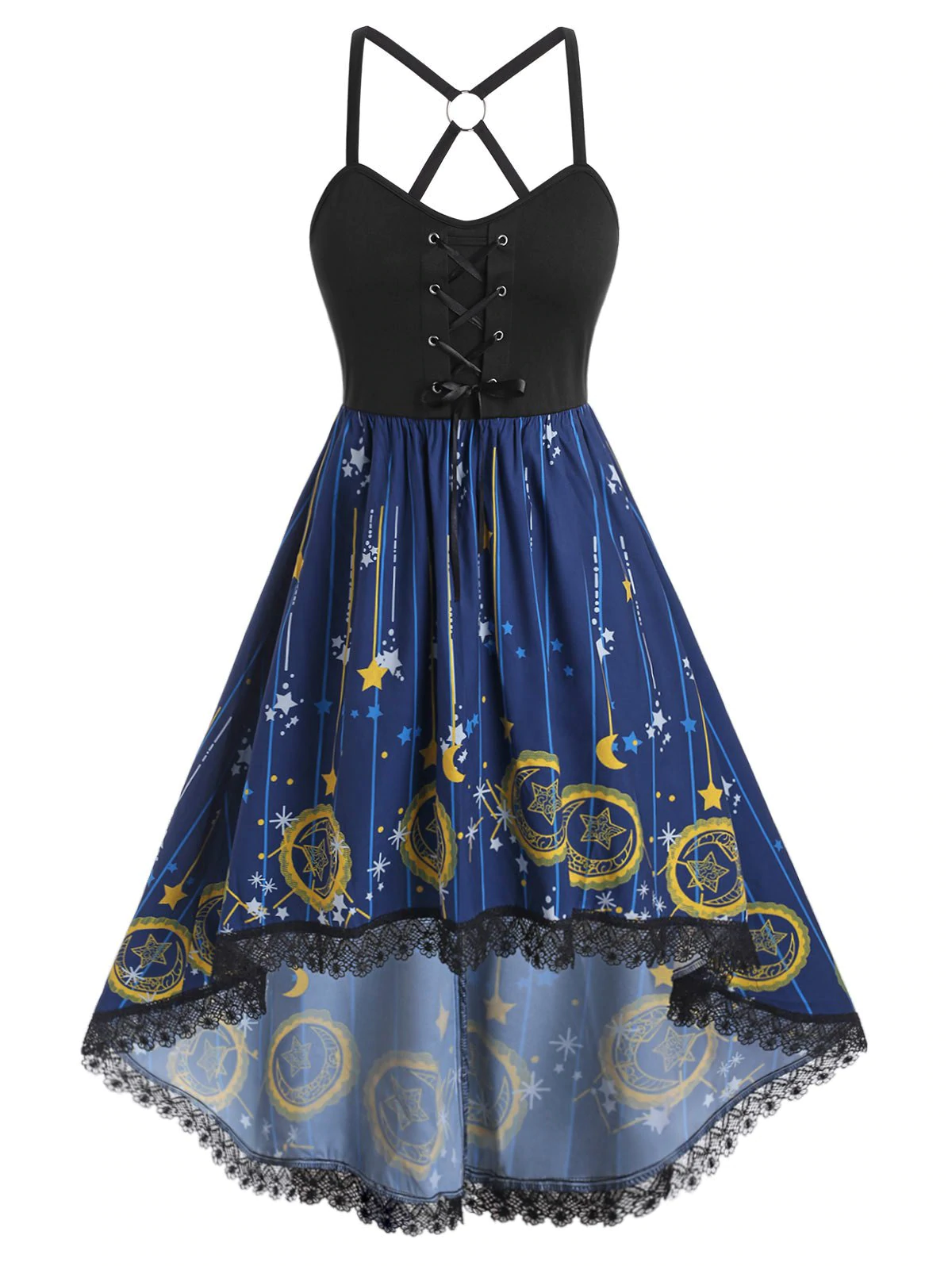Plus Size Moon Stars Print High Low Dress
