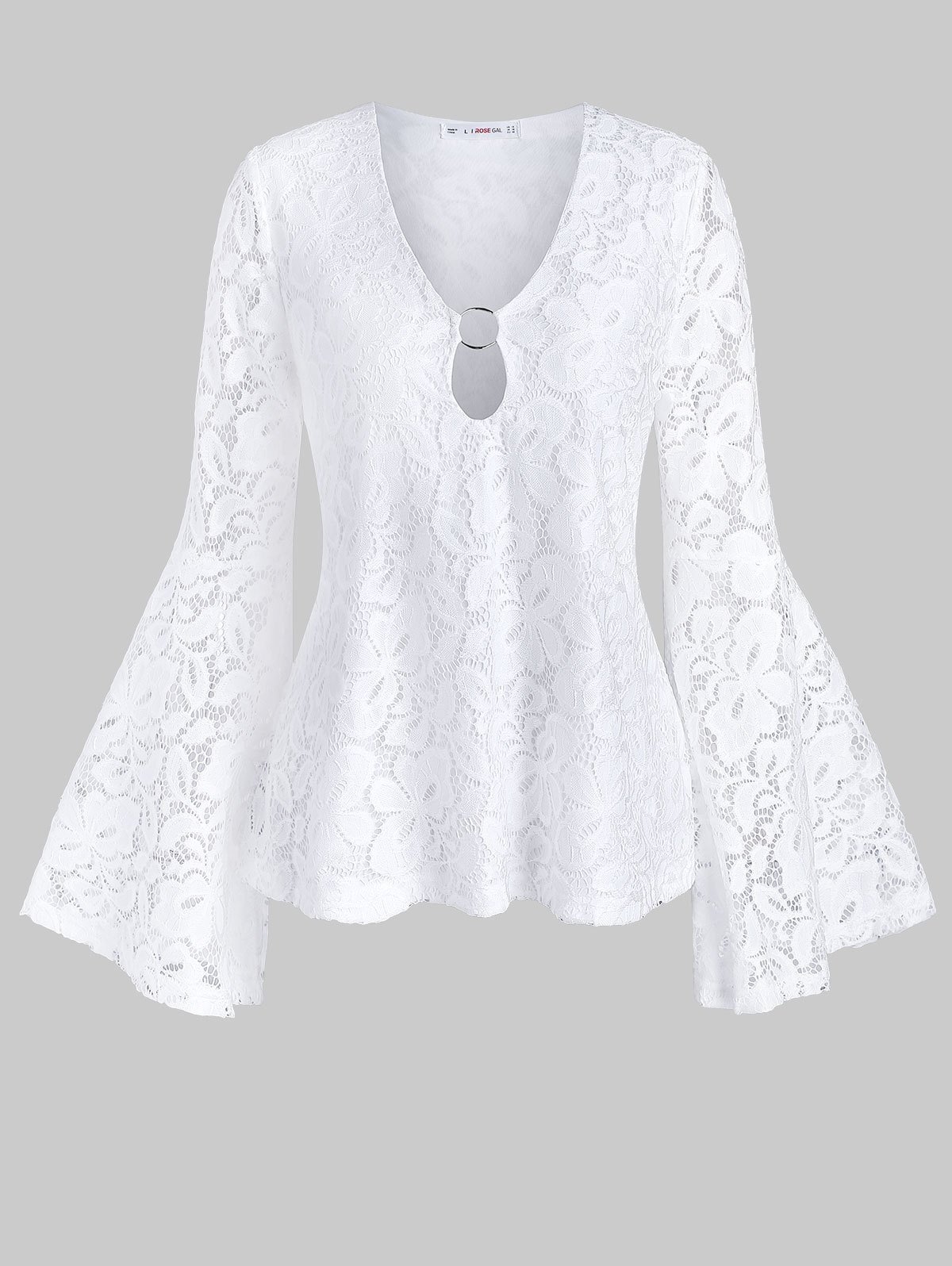 Plus Size O Ring Bell Sleeve Lace Blouse