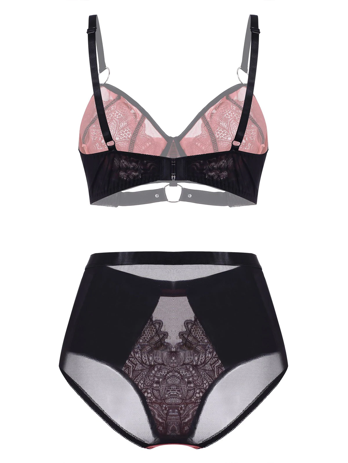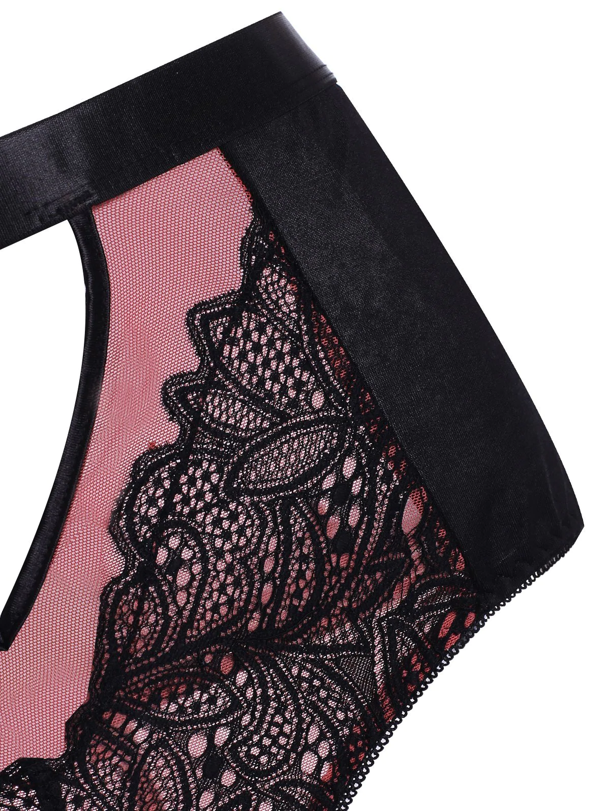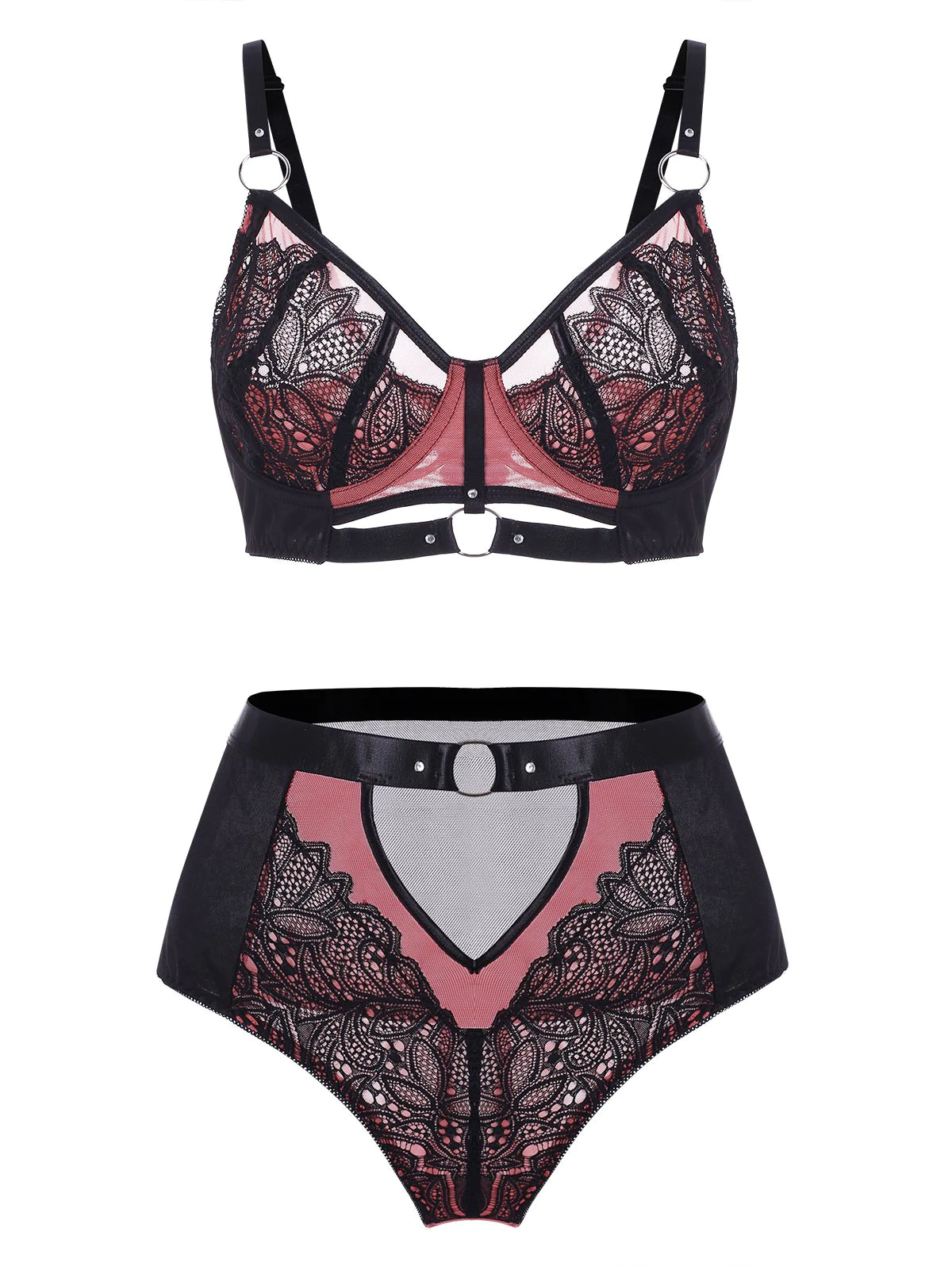 Plus Size O Ring Lace Insert Cutout Lingerie Set