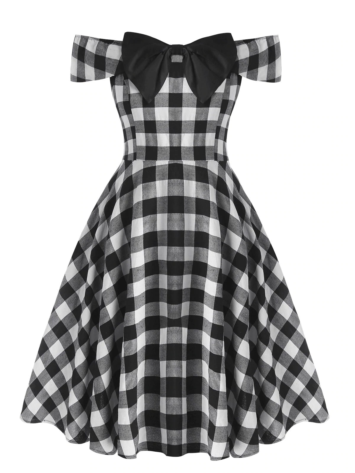 Plus Size Off The Shoulder Checked Bowknot Dres