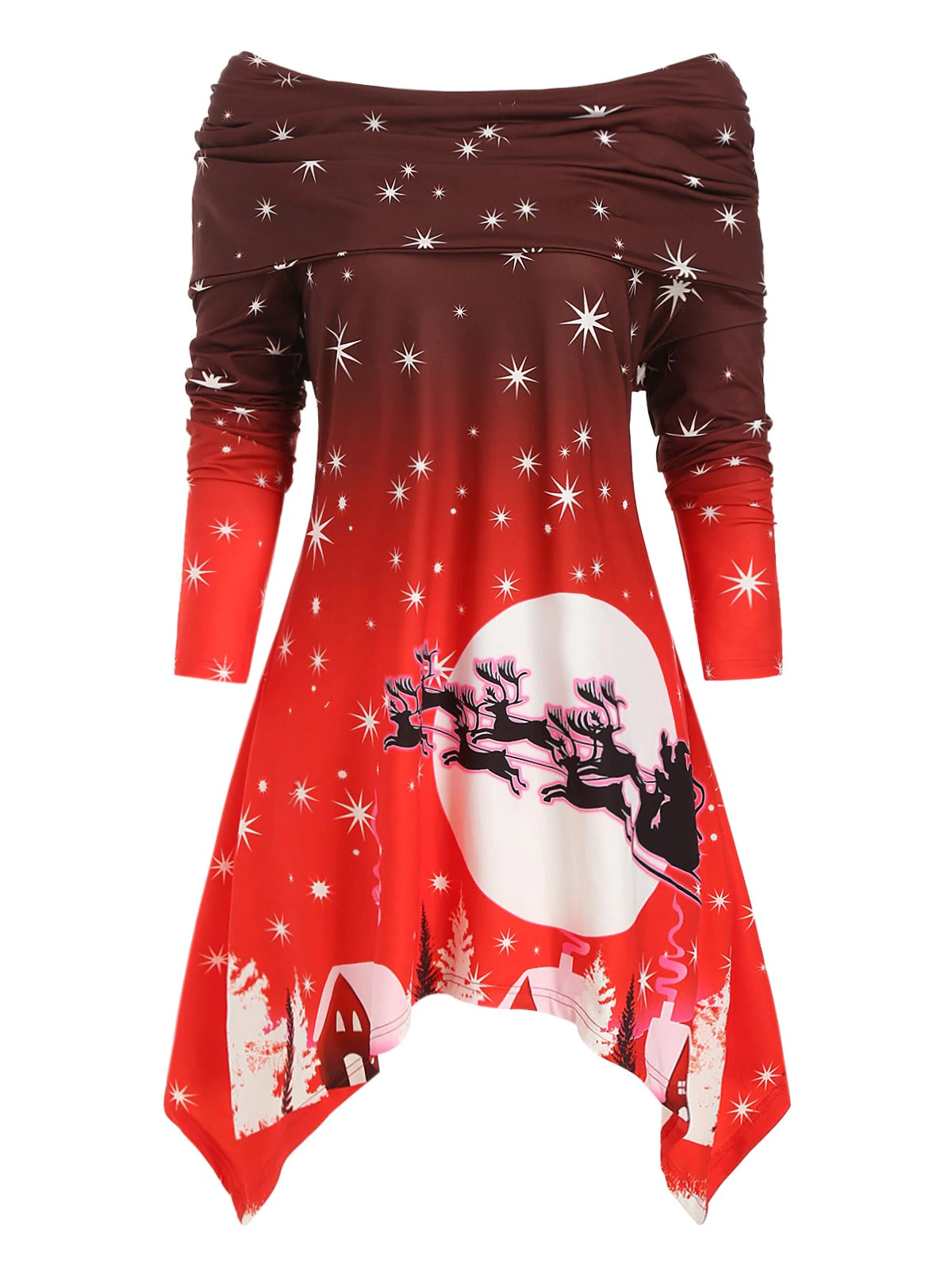 3 reviews for Plus Size Off The Shoulder Foldover Printed Christmas Dress