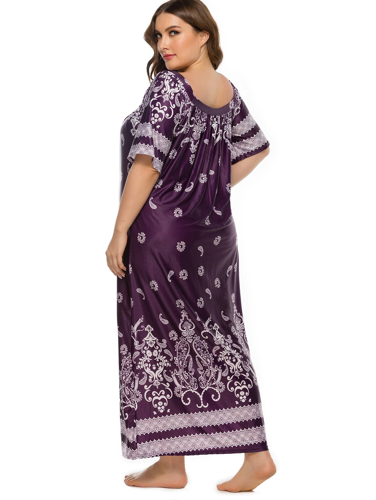 Plus Size Paisley Print Raglan Sleeve Maxi Dress